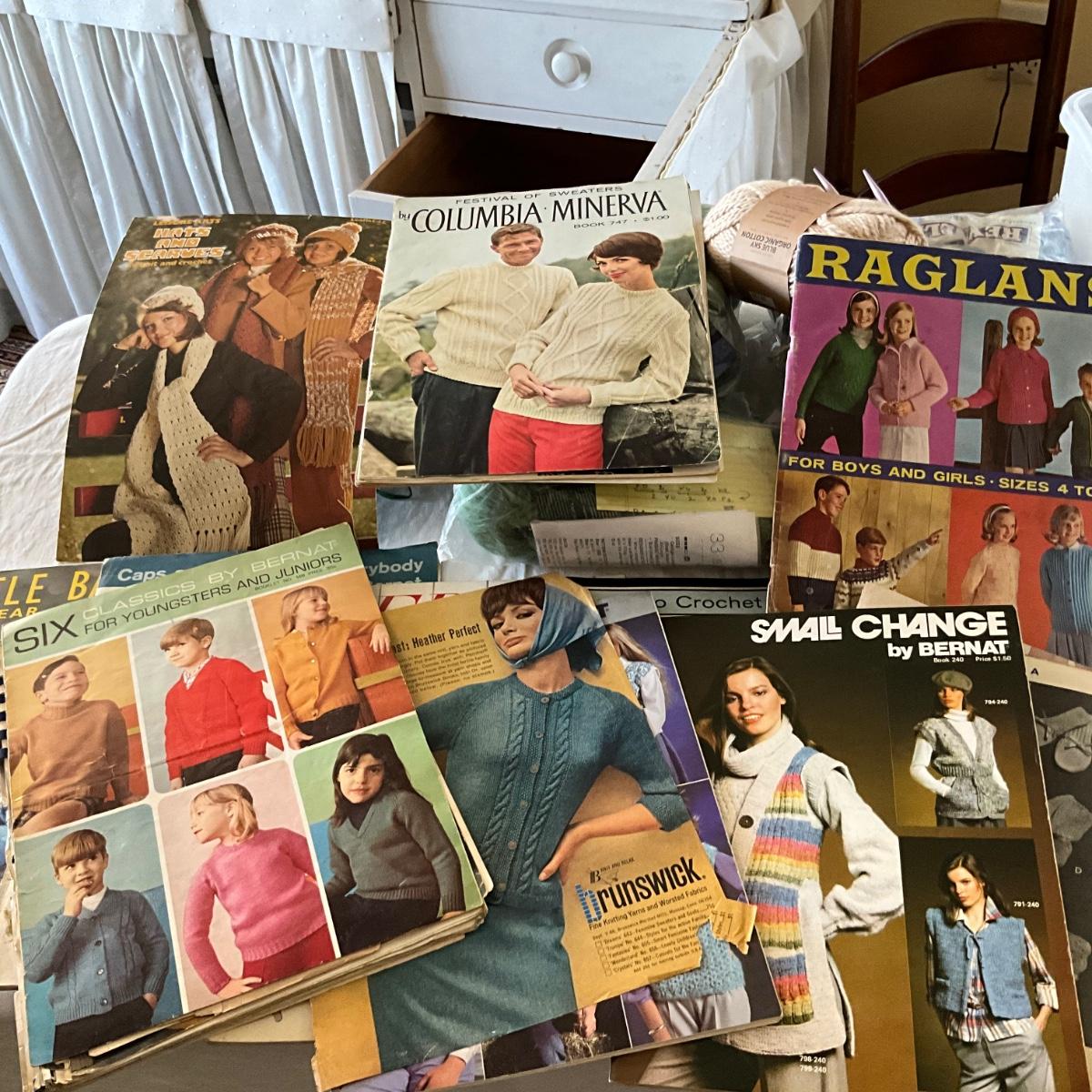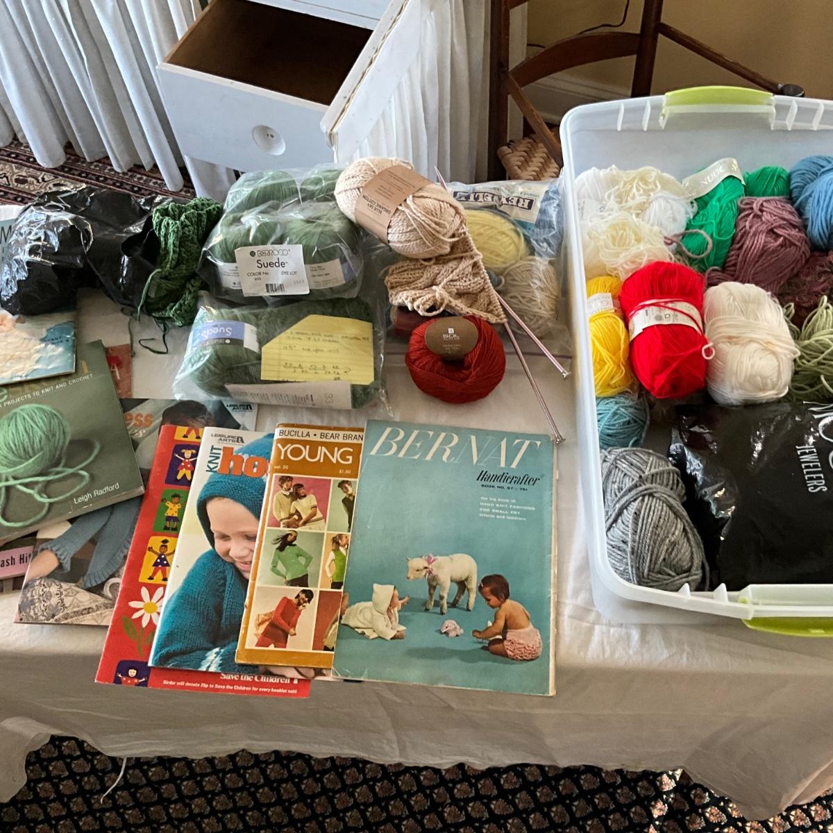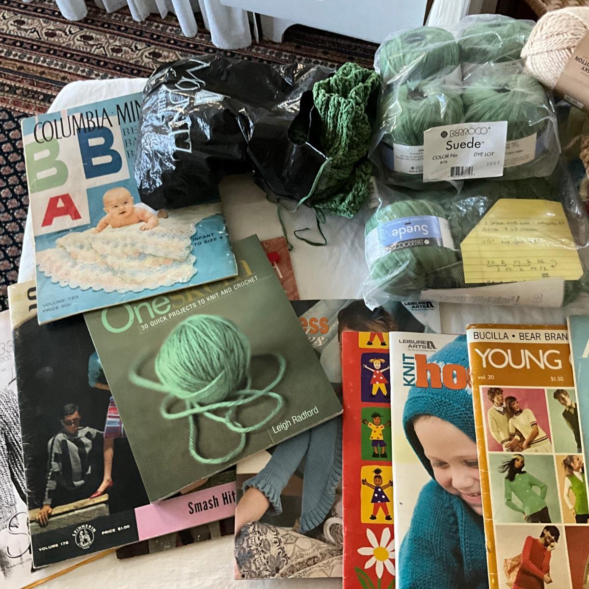 UBC2023 Large Tub of Knitting Yarn and Vintage Patterns