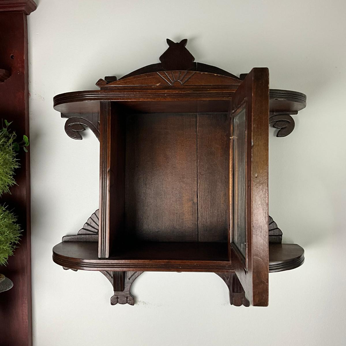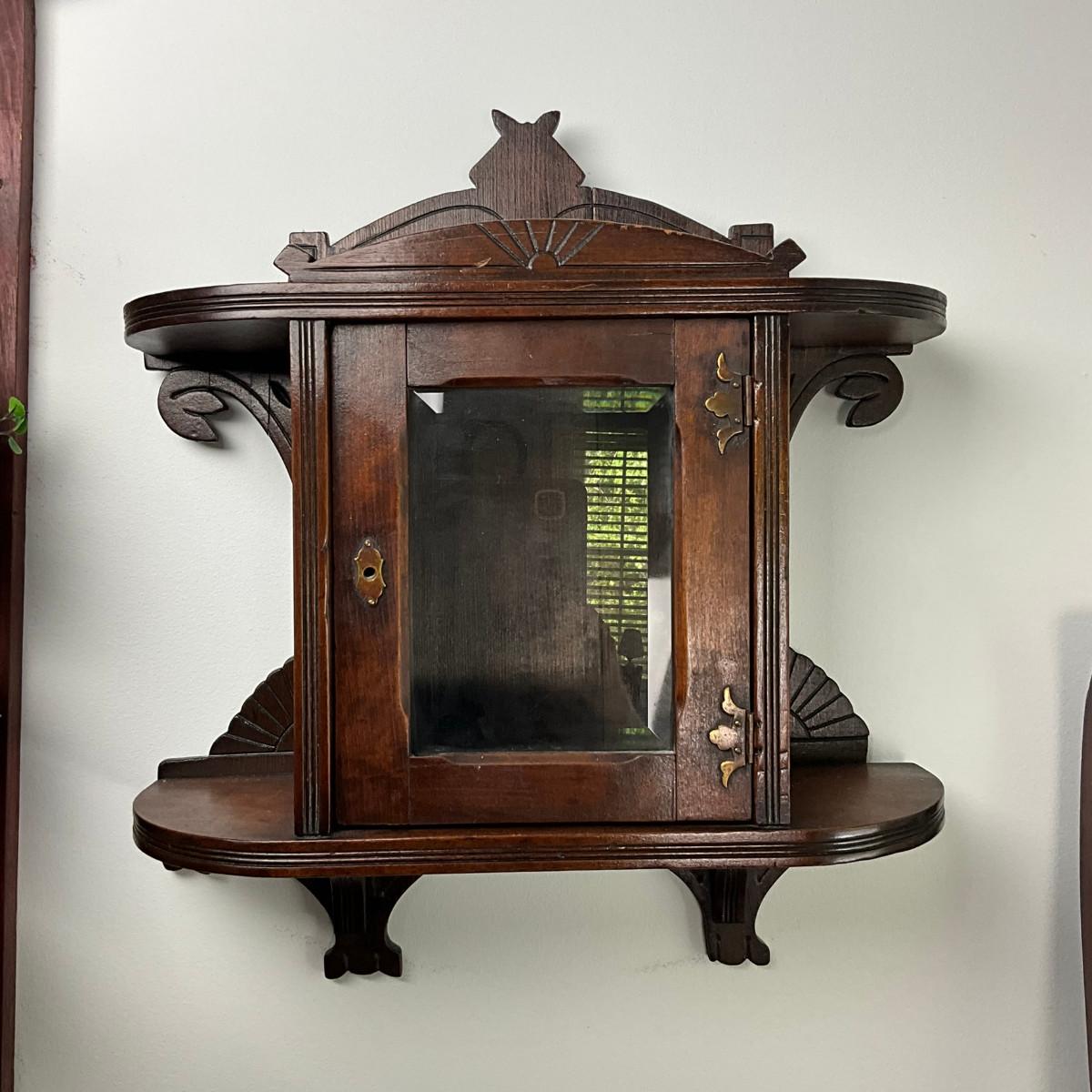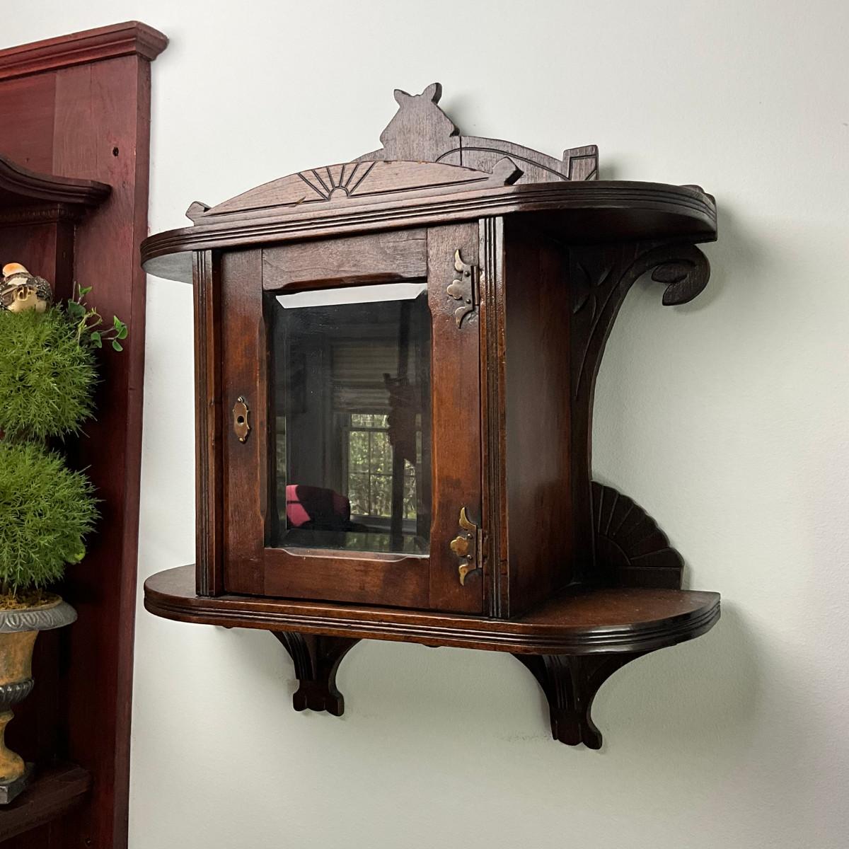 UBC526 Antique Hanging Wall Shelf With Beveled Glass Door