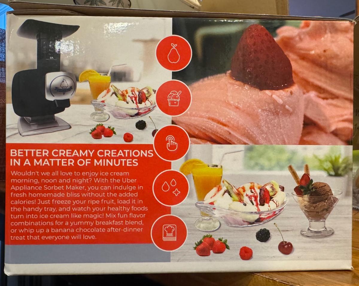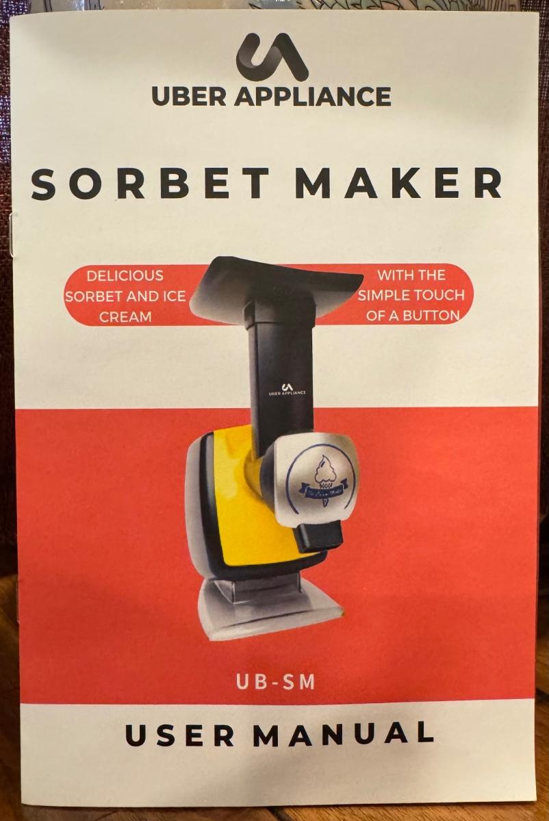 Uber Appliance Sorbet Maker. Instruction Manual & Recipe Book Included.
