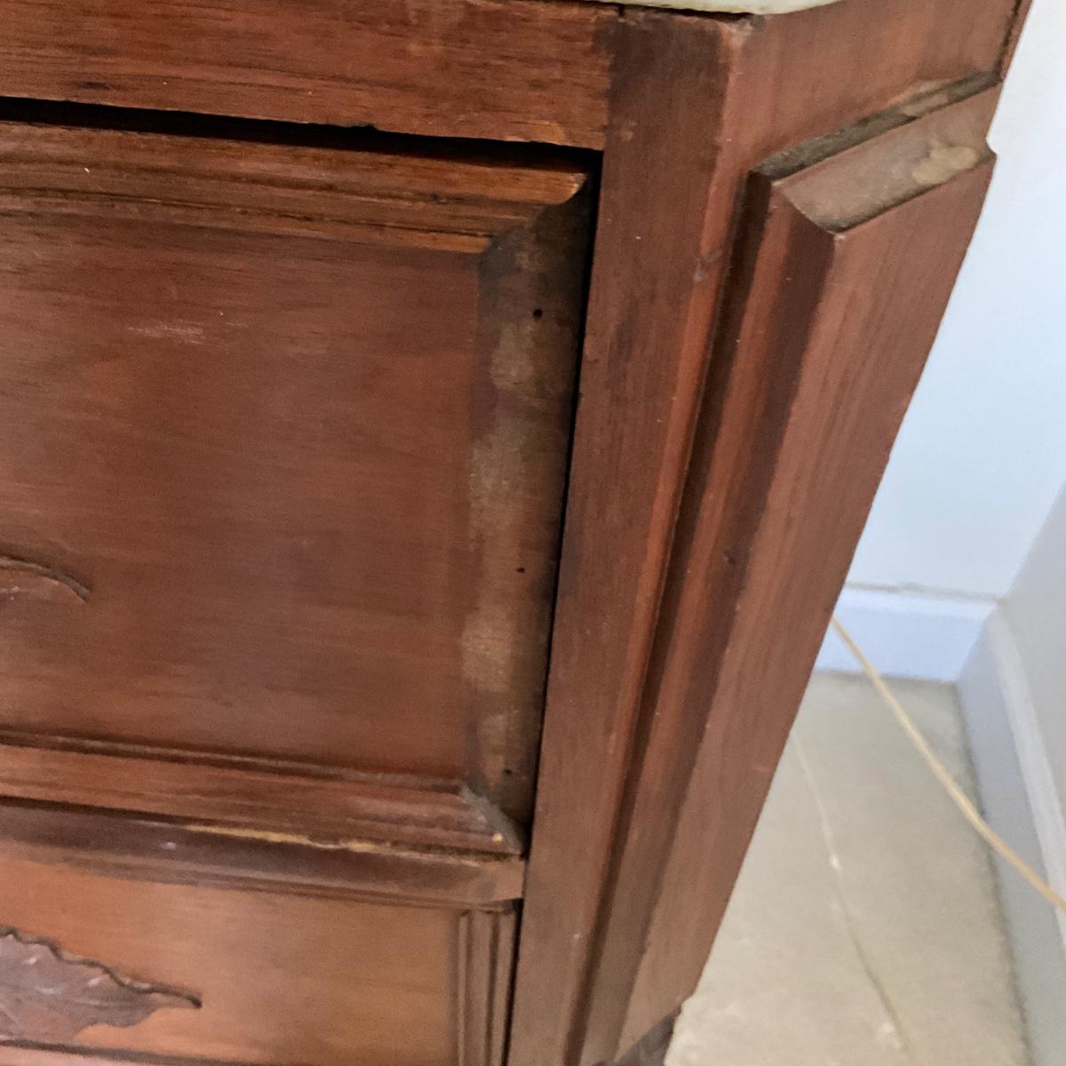 Top drawer is missing trim work on side / end