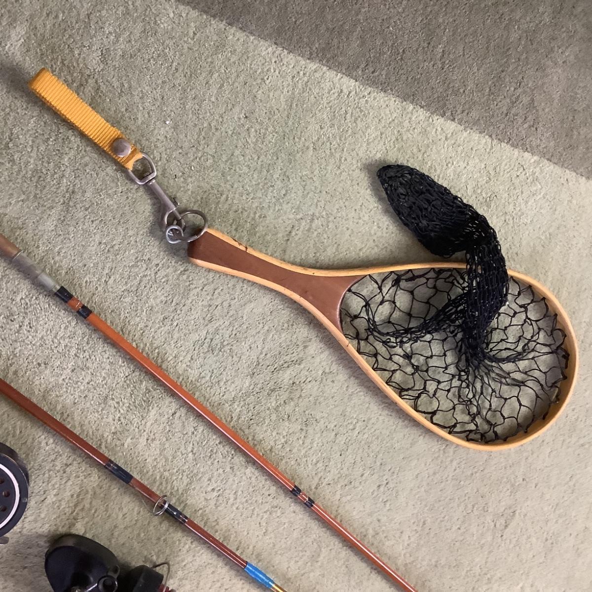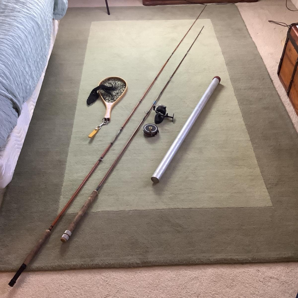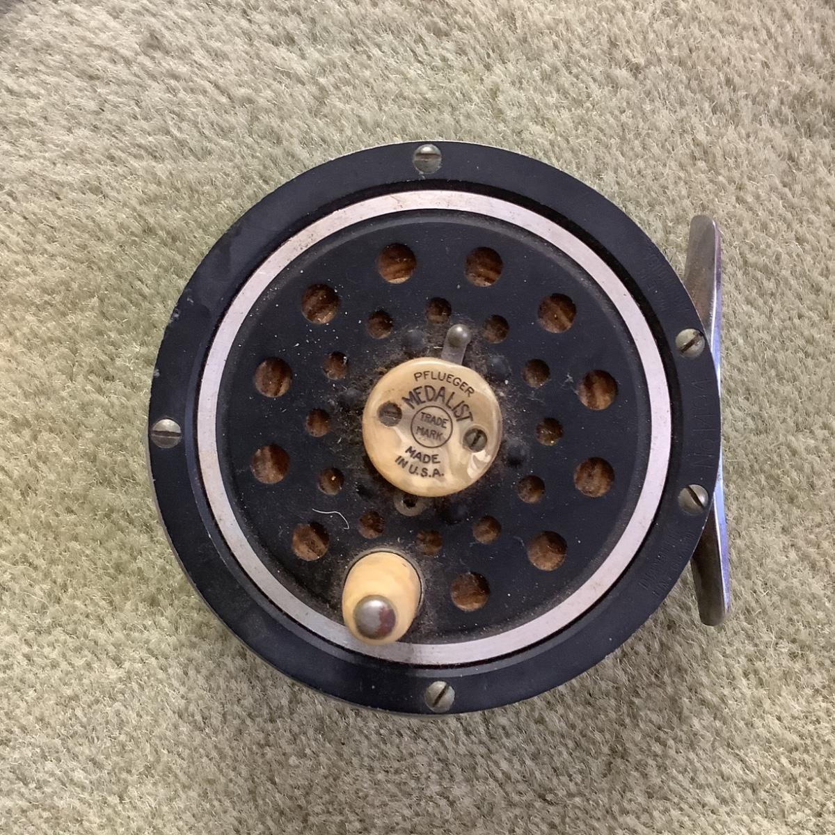 long rod is marked “Beans LL” genuine ebonite blank , Pflueger medalist fly reel and vagabond model 1 reel