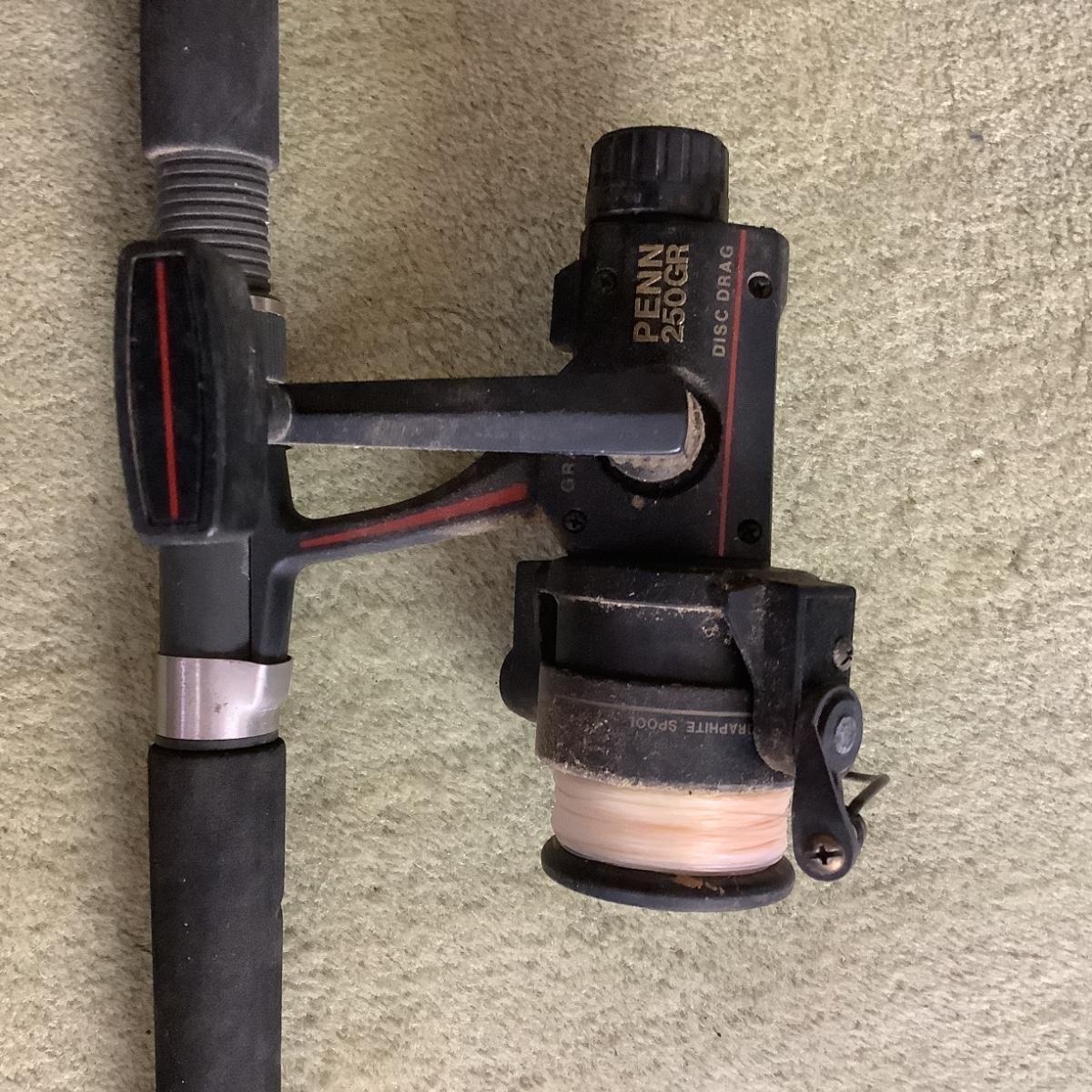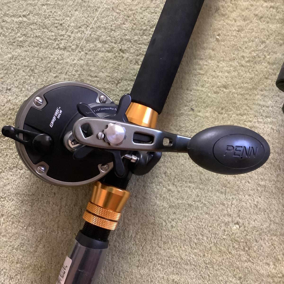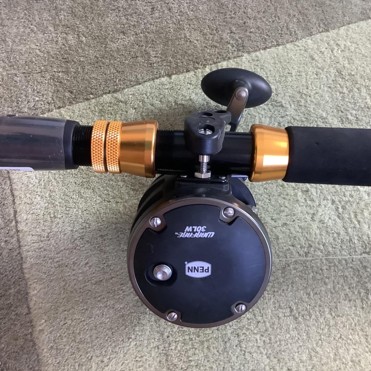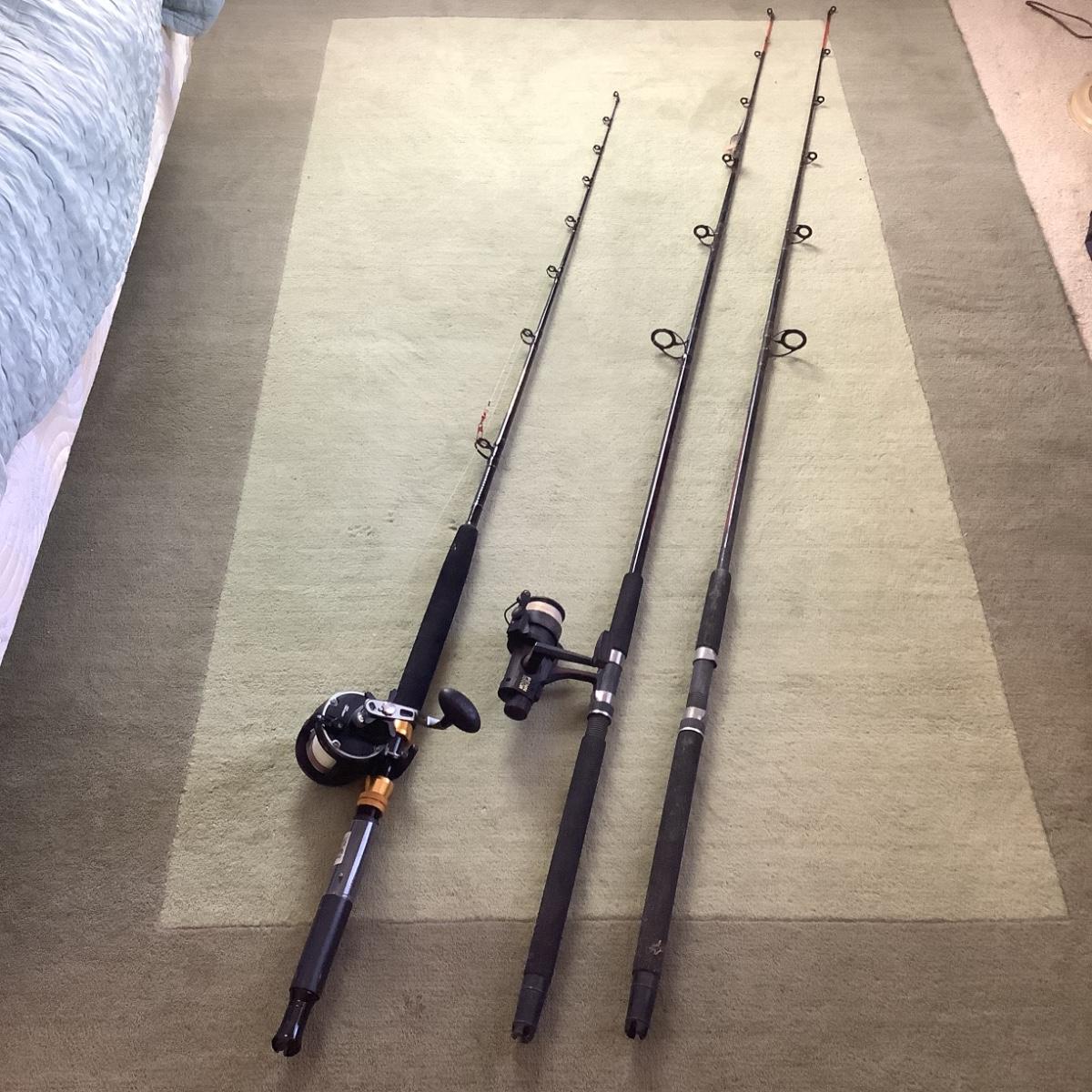 Line with Penn Warfare 30LW reel both like new with additional 2- 7’ sails tar power tip rods and one pen reel