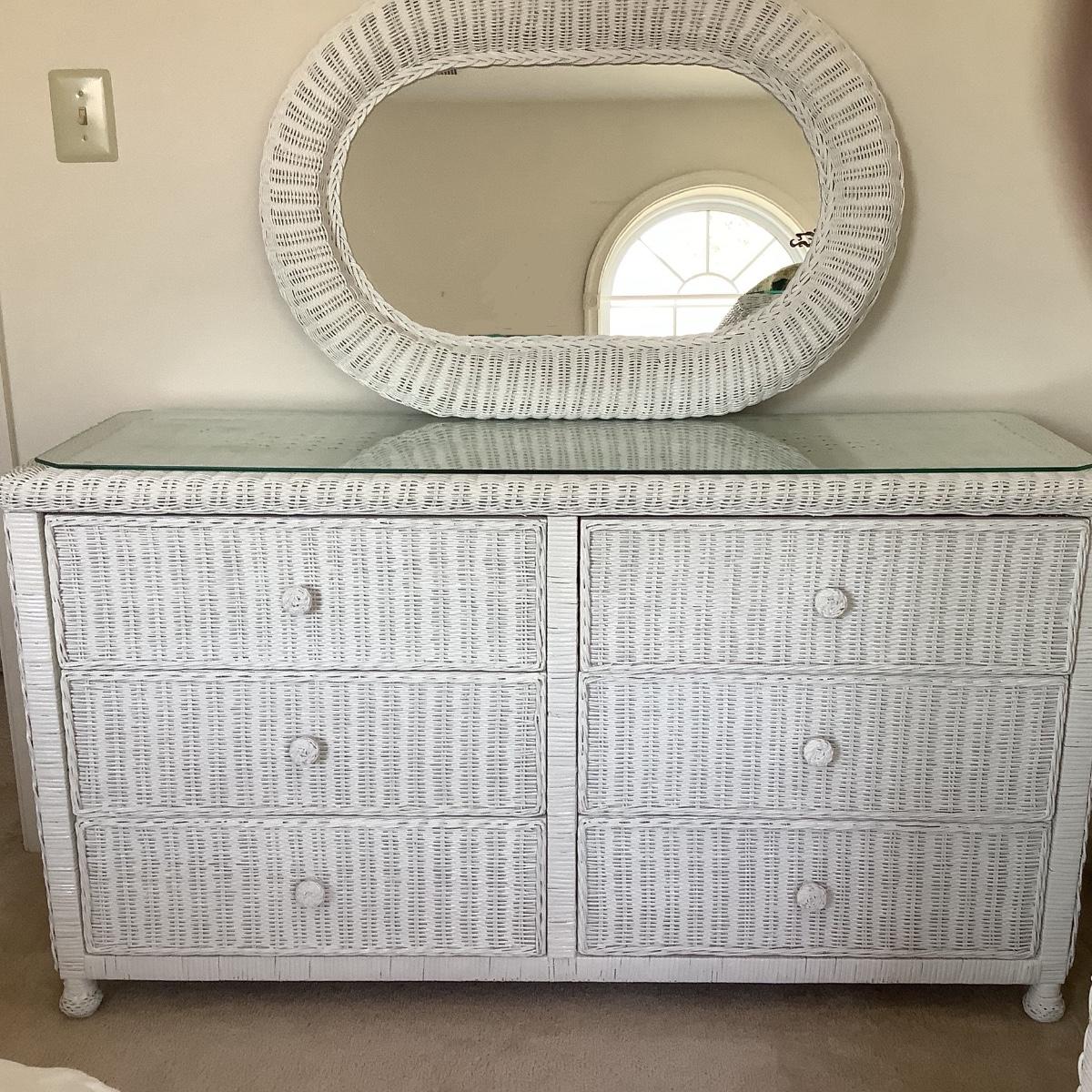 UBL762 Glass Top 6 Drawer Wicker Dresser and Mirror