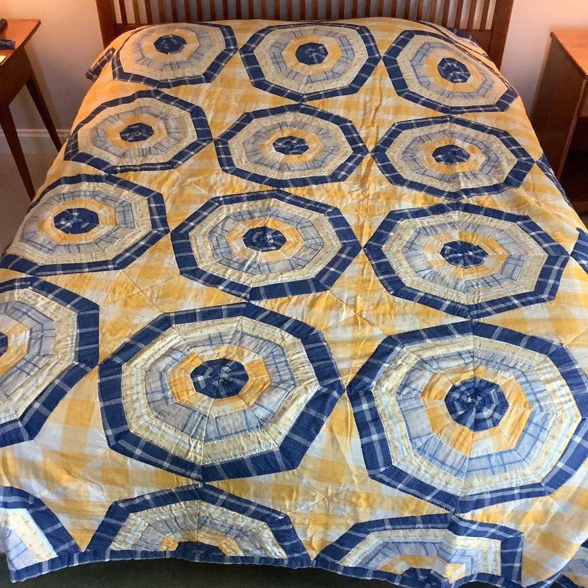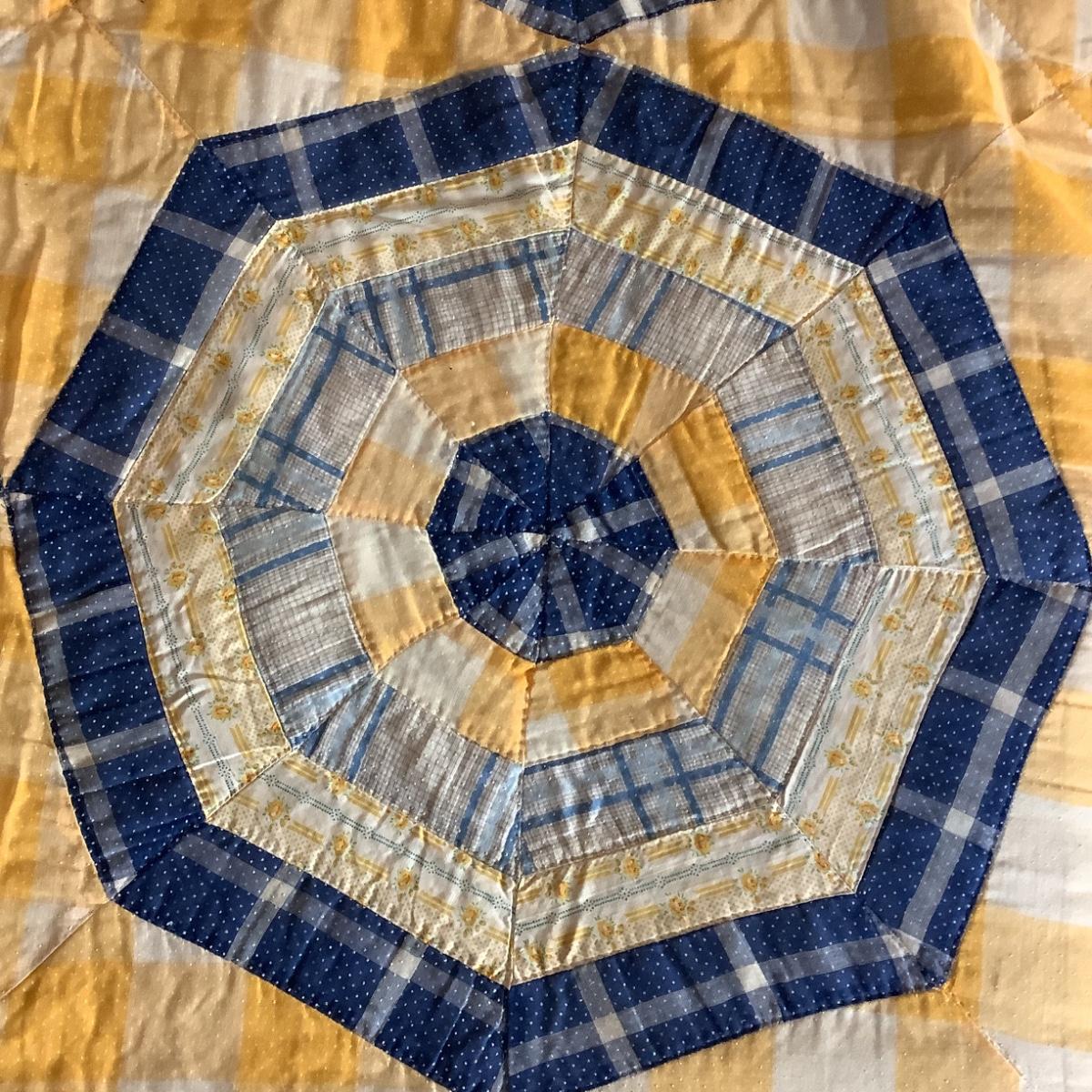UBL769 Vintage Blue, Yellow, White Octagon Handmade Quilt