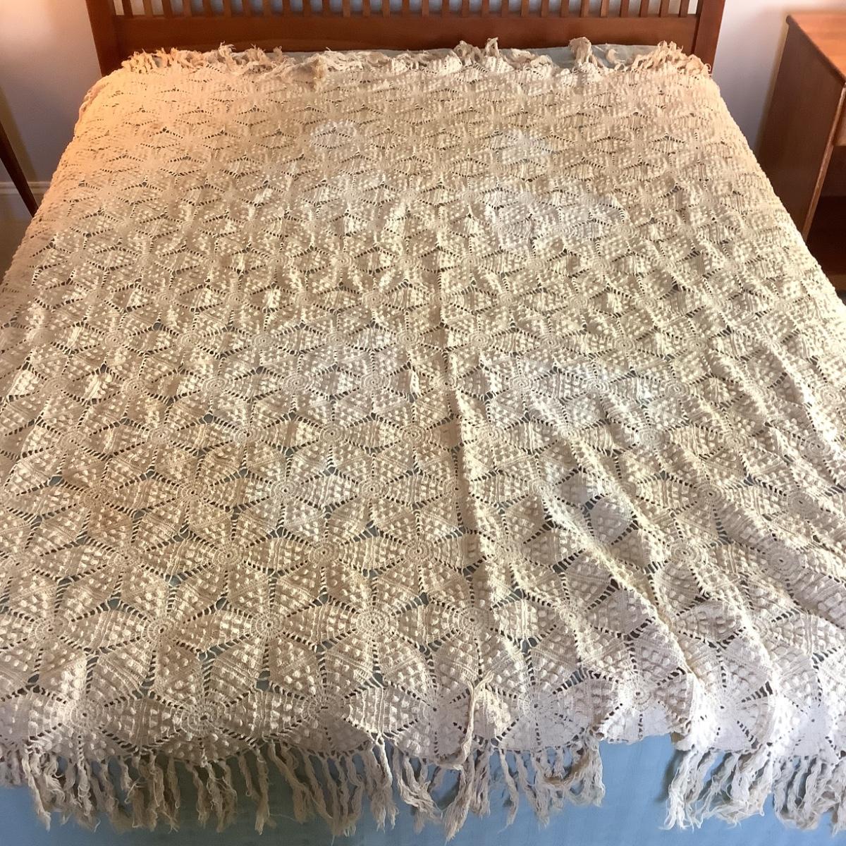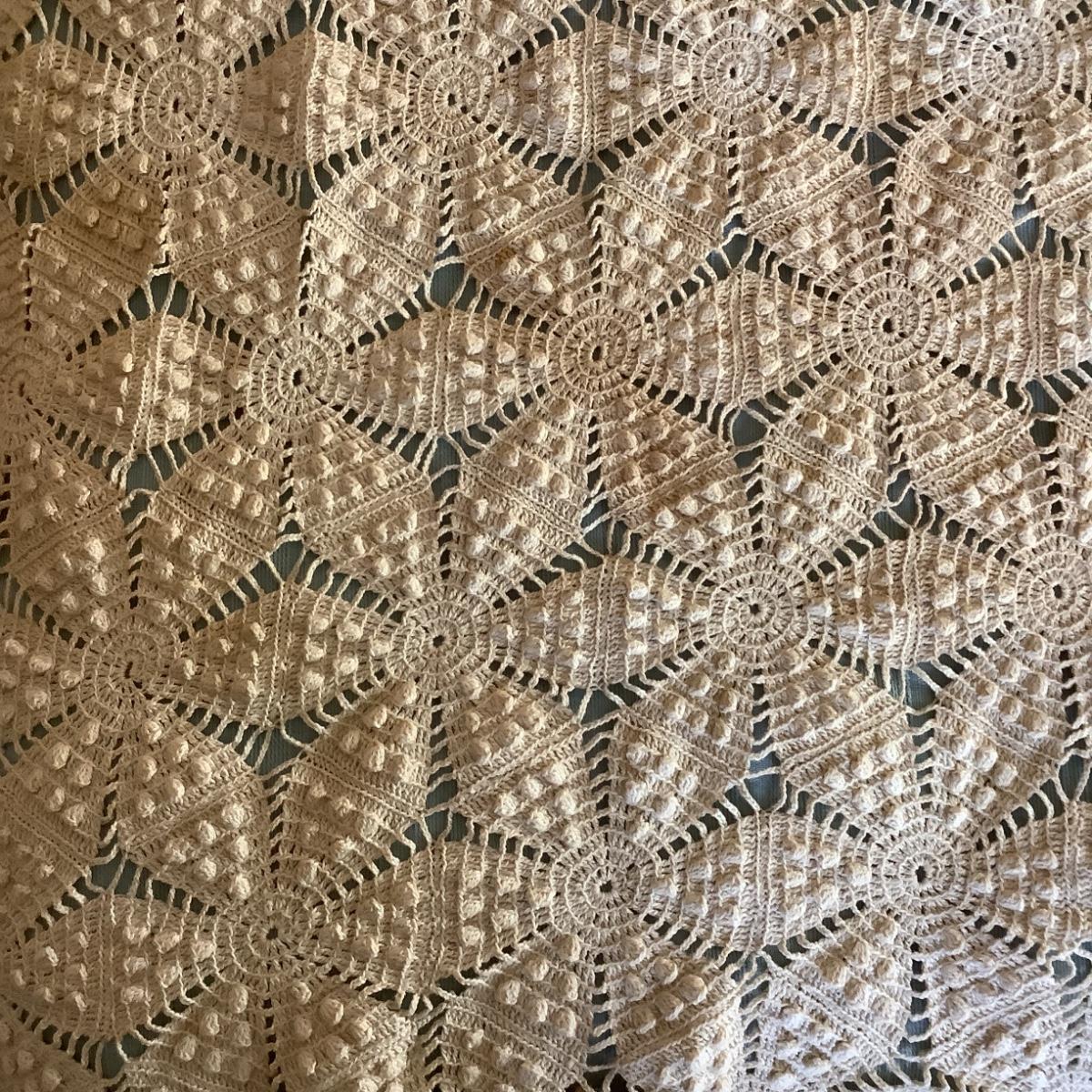 UBL778 Antique Hand Crochet Popcorn Ecru Blanket