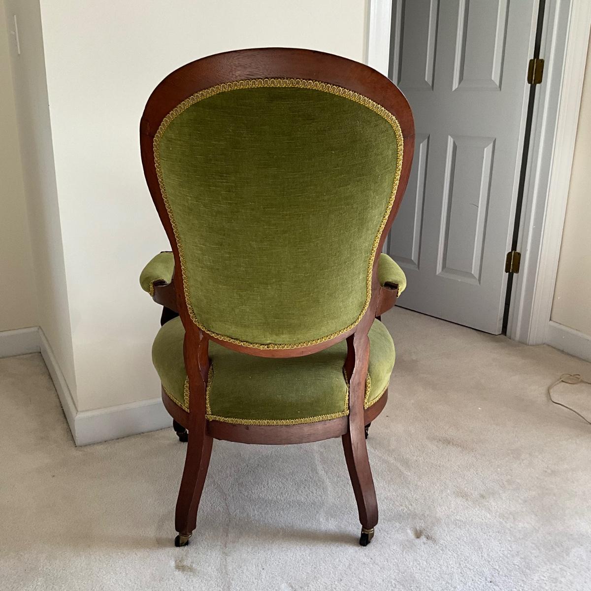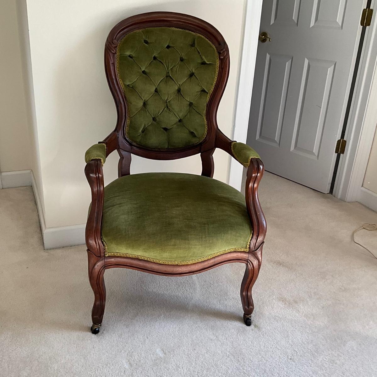 UBR1232 Victorian Green Velvet Parlor Chair