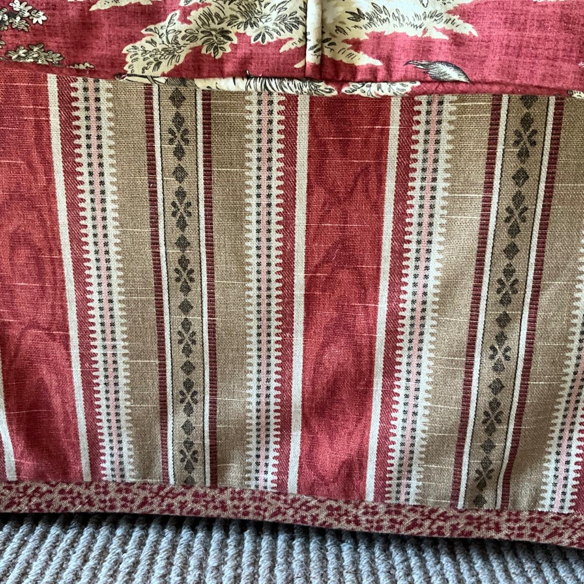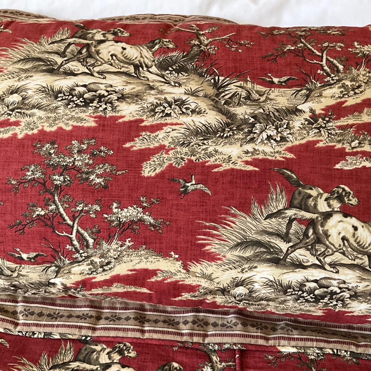 Fabric is by P. Kaufman in the Pointer Woodrose Wilderness Toile with King bed cover and 2 king shams and coordinating bedskirt