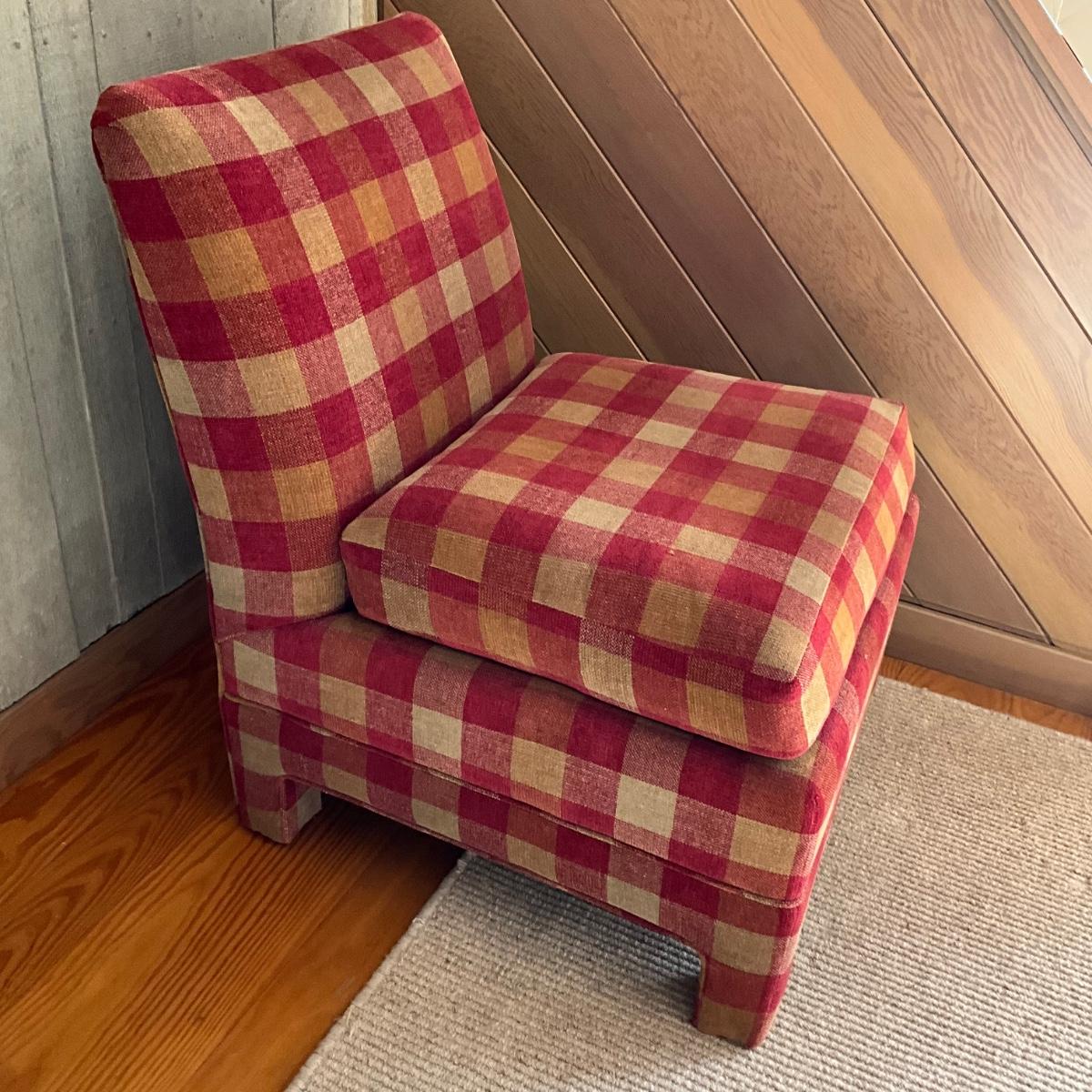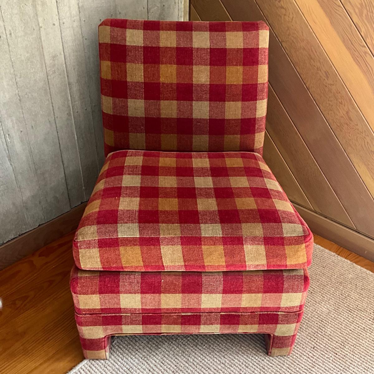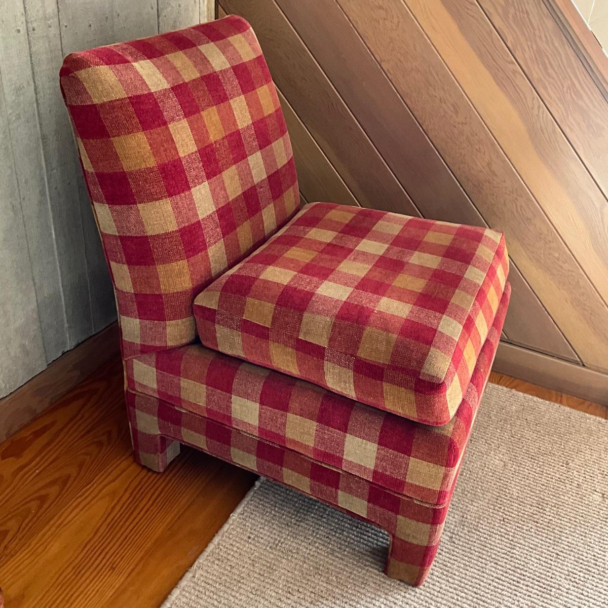 Red, Beige, Yellow buffalo check slipper chair in very good condition