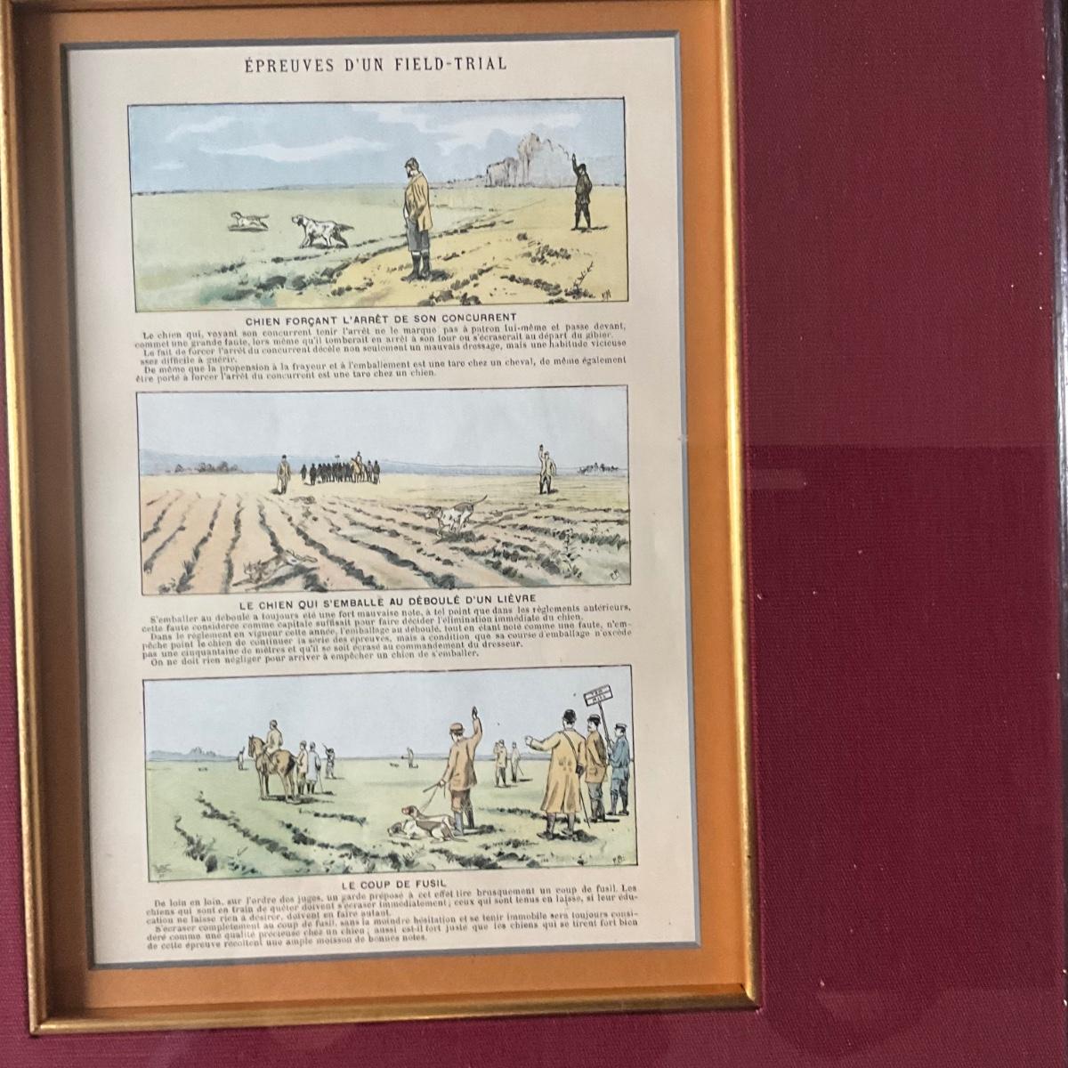 UC807 Pair of Antique French Hunting Illustrations "Hunting Theory", Field Trial Test