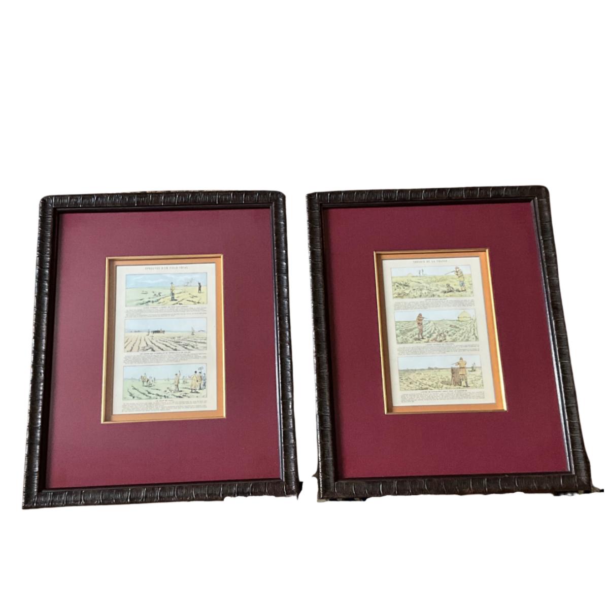 Antique french hunting illustrations measuring 16.6" high x 13.75" wide