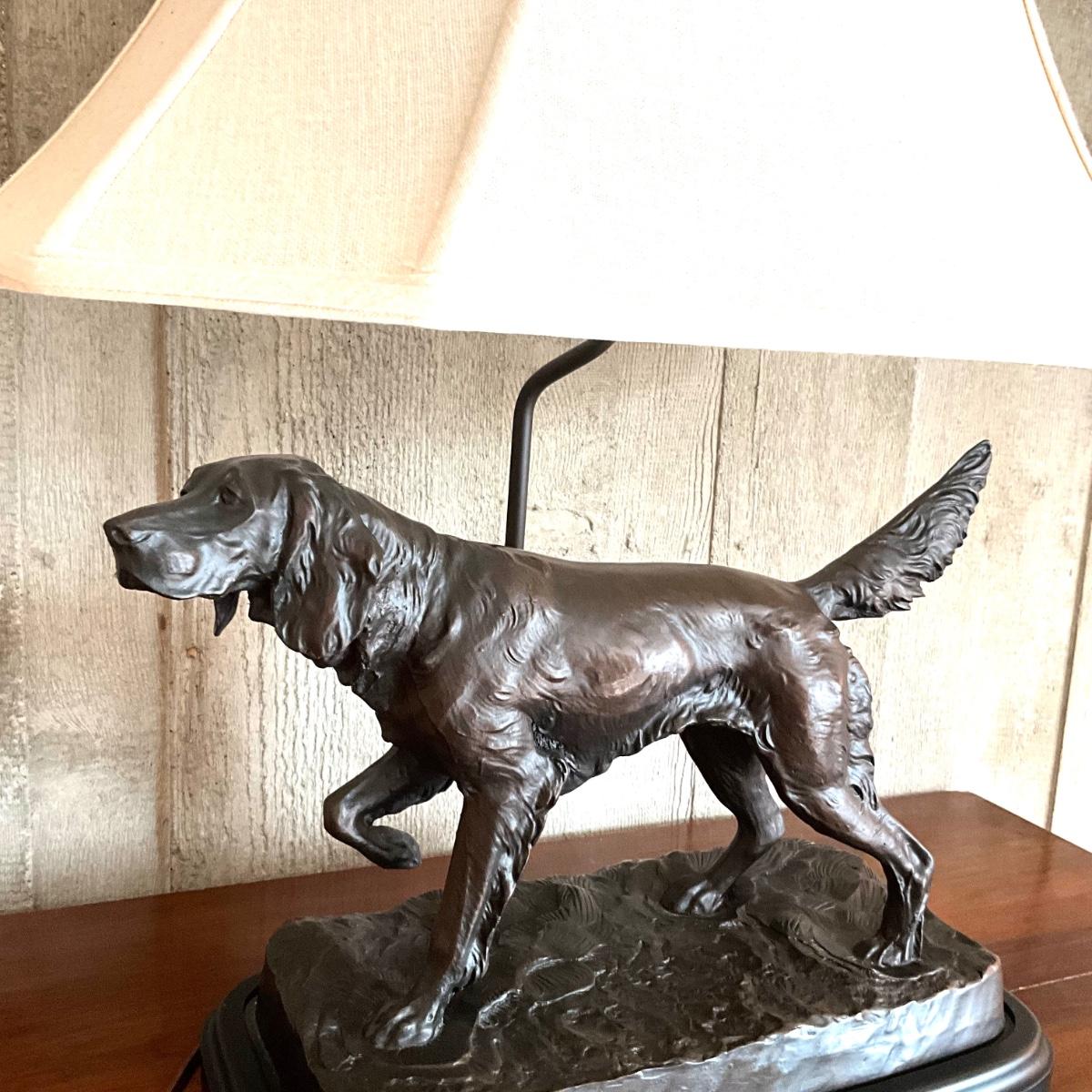 Pointing Setter Lamp Cast sculpture with bronze finish