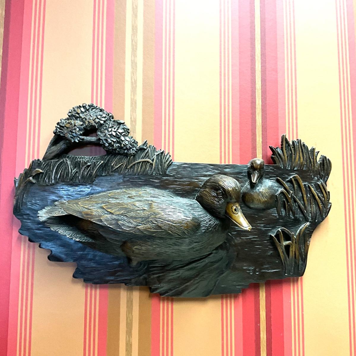 UC814 Signed Waterfowl Wood Carving Wall Hanging