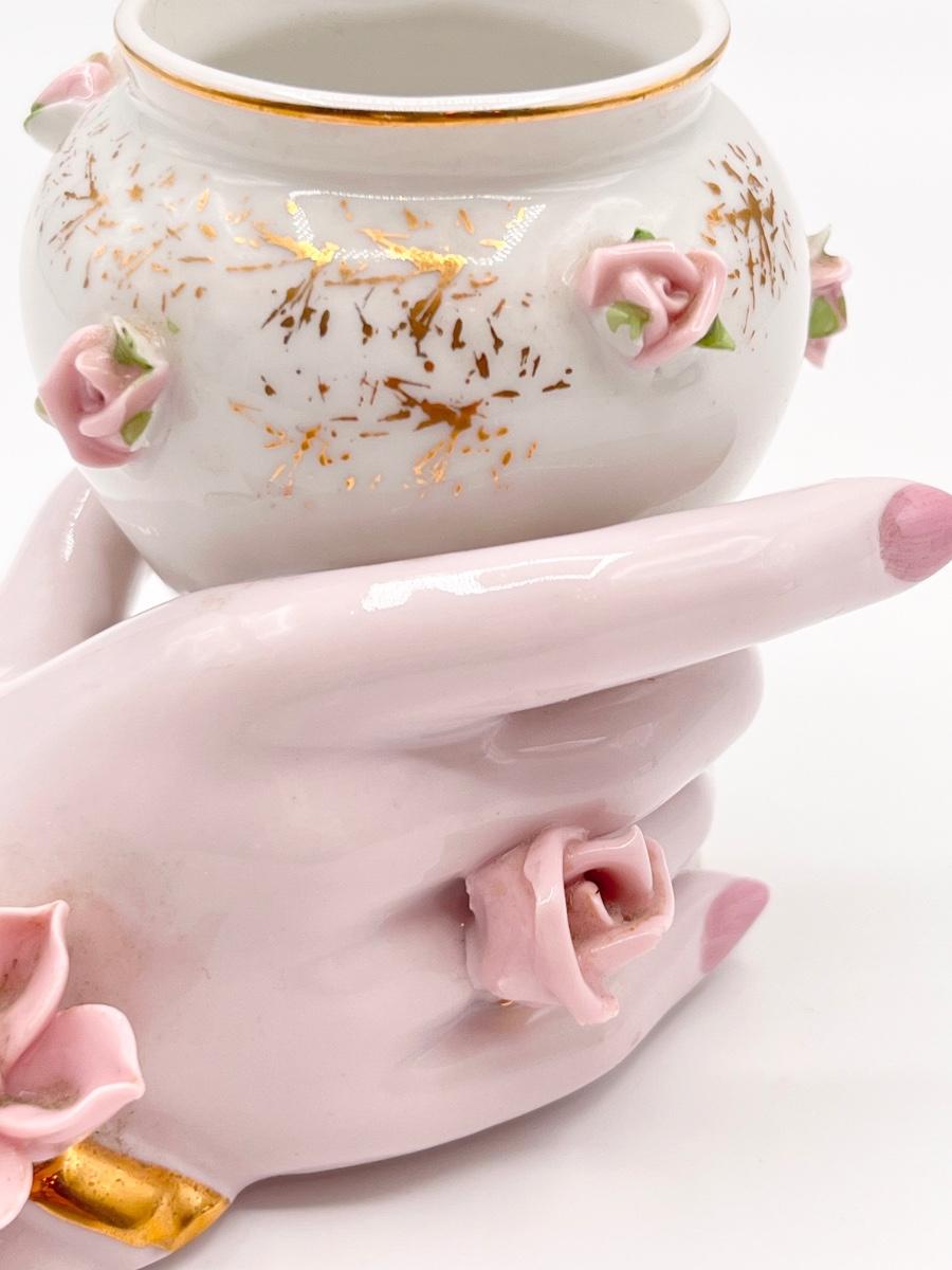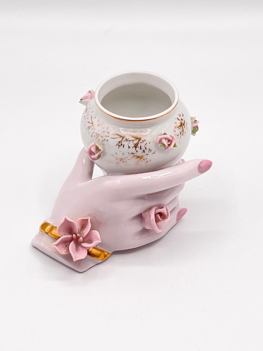 UCAGCO ~ Vtg. Porcelain Hand Holding Planter Vase