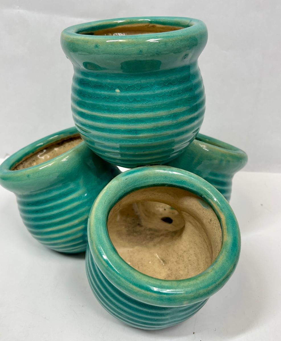 VIntage Turquoise Glaze Pottery Strawberry Pot 4 pots