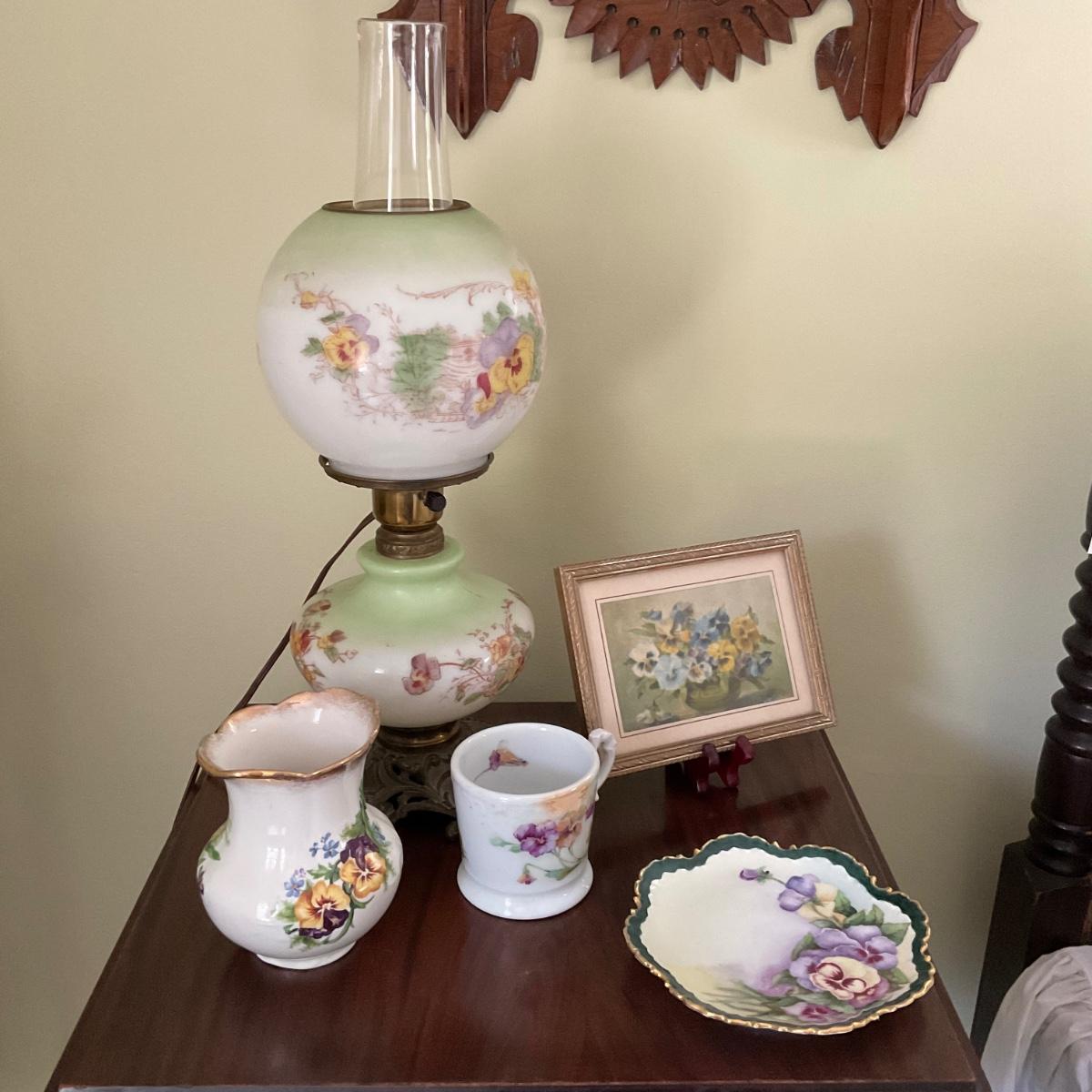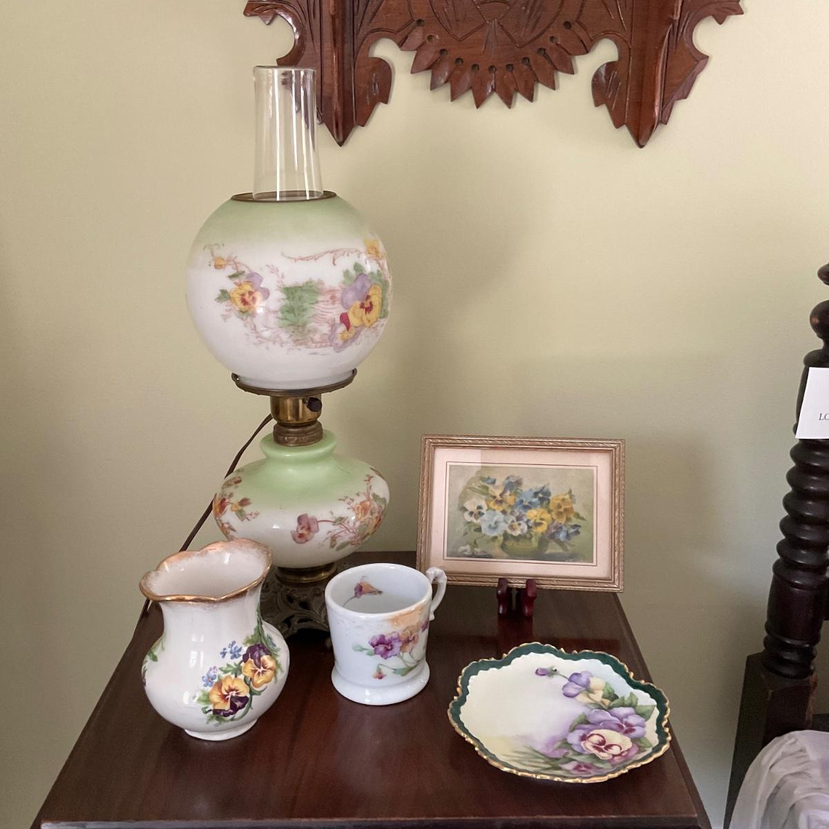 UD751 Antique Pansy Globe Lamp with Decor Accents