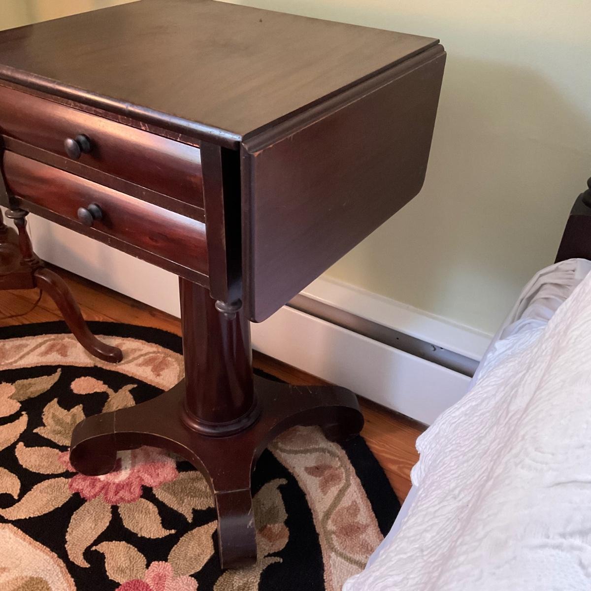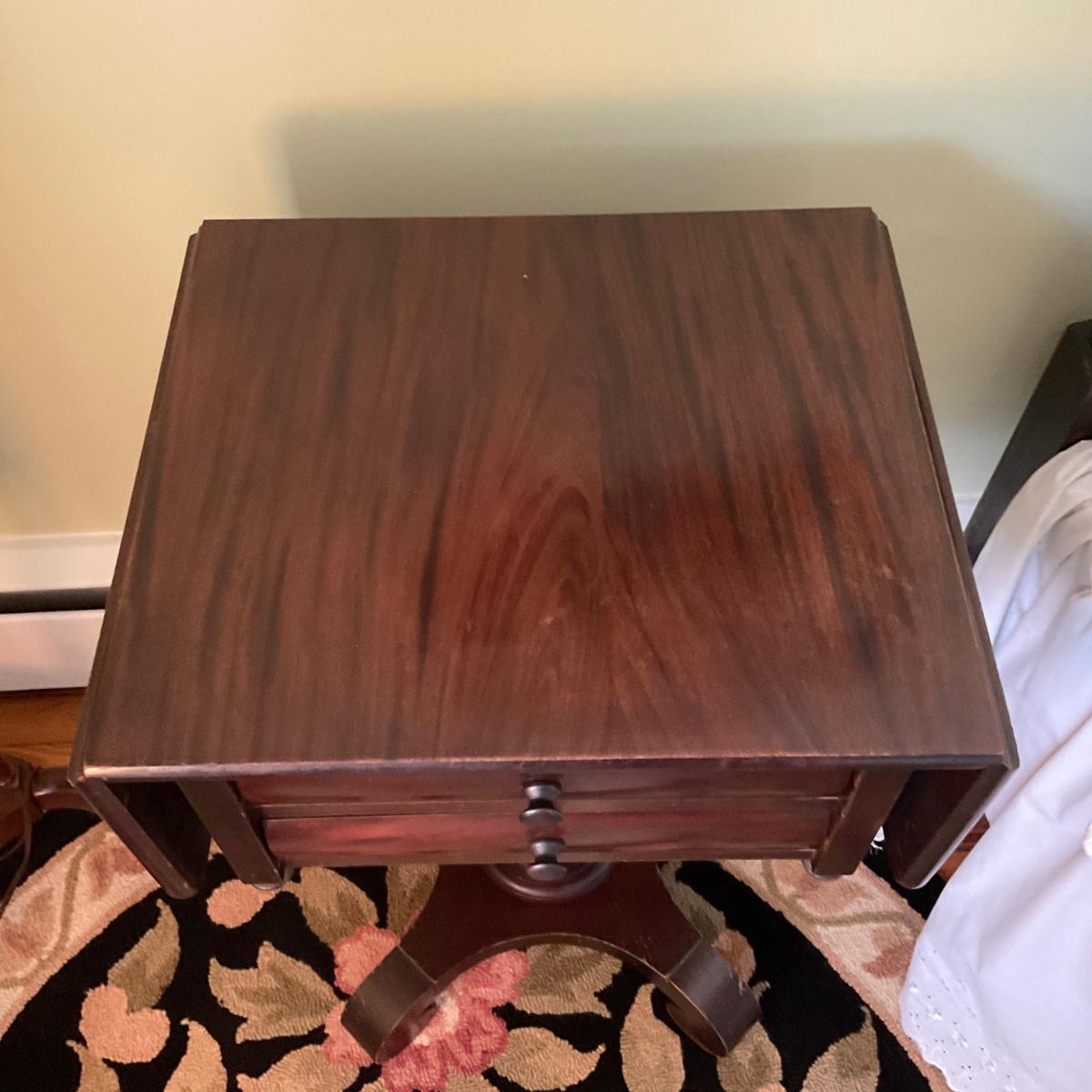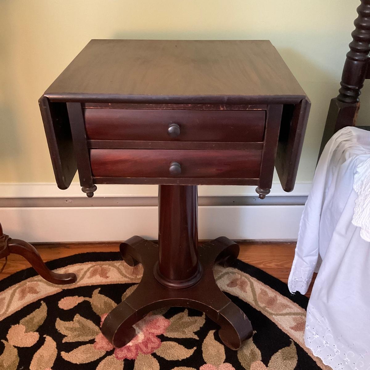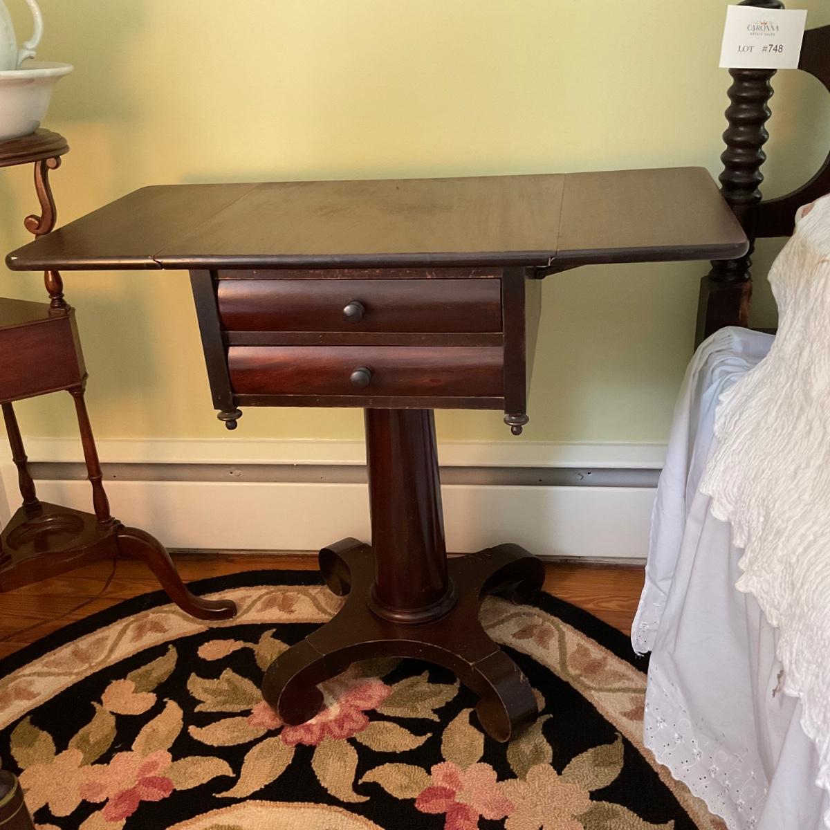 UD752 Antique Mahogany Empire Two Drawer Drop Leaf Table
