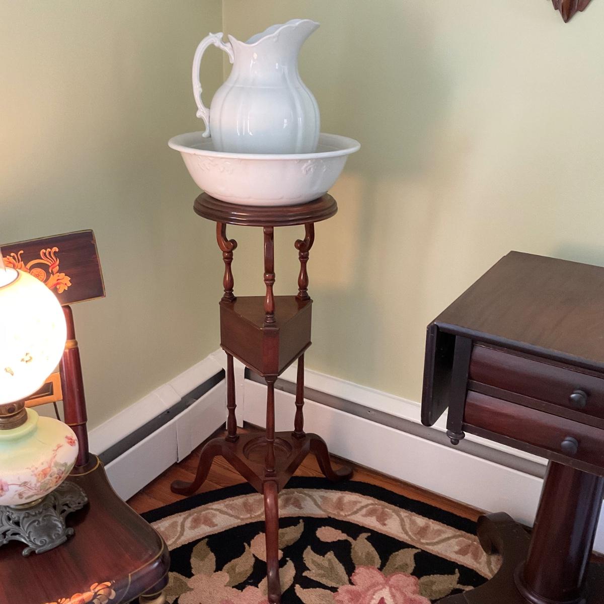 UD753 Vintage Mahogany Washstand with Ironstone Bowl and Pitcher