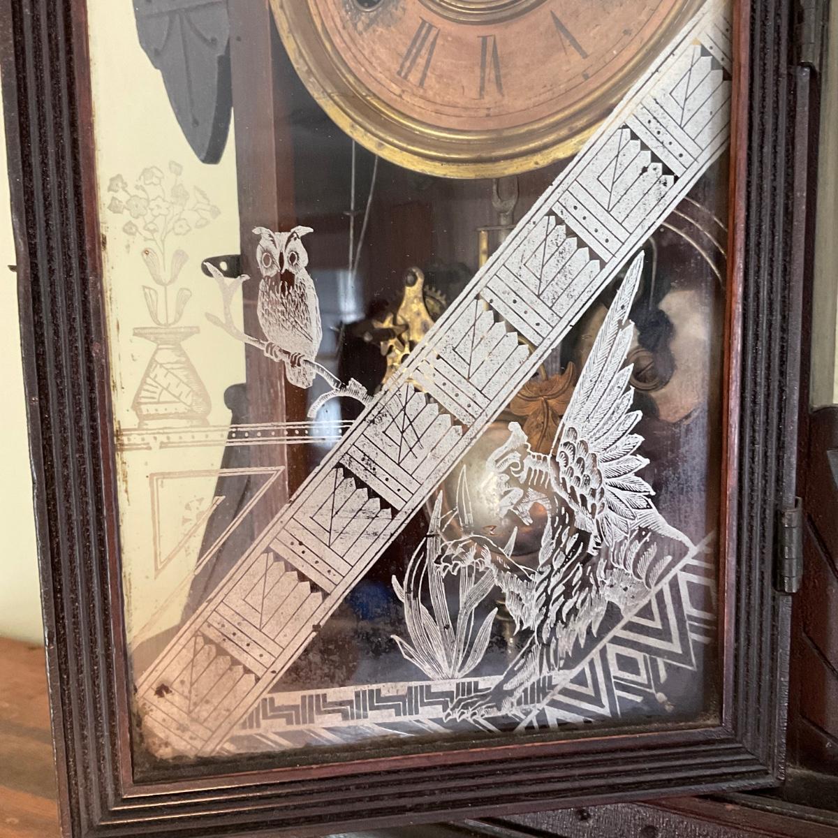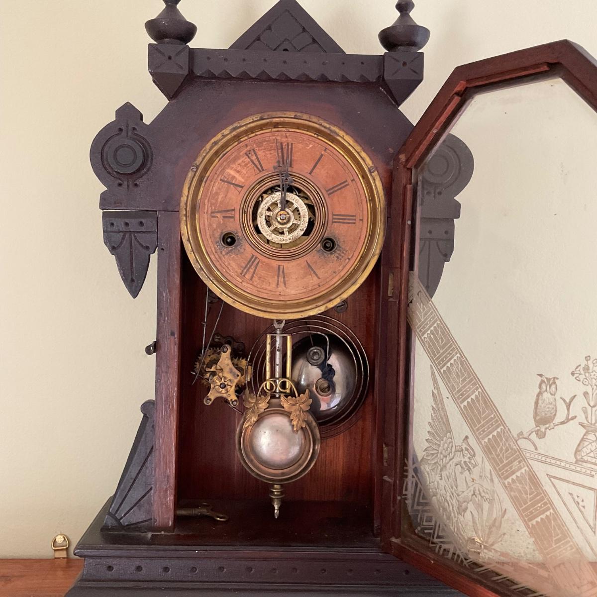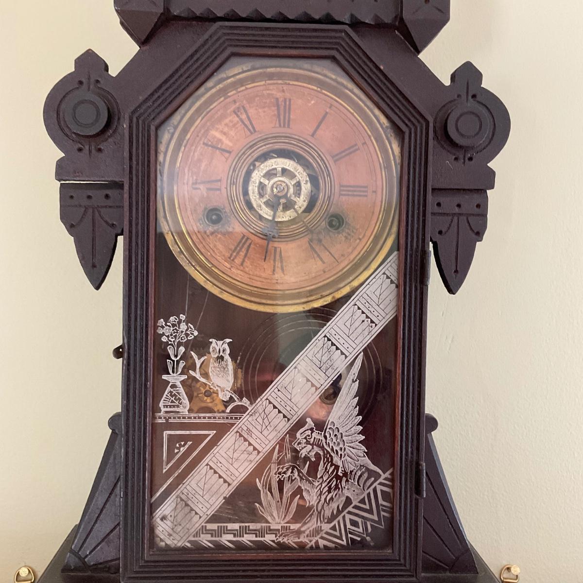 Clock measuring 16” high x 11” wide , clock is in working condition with key