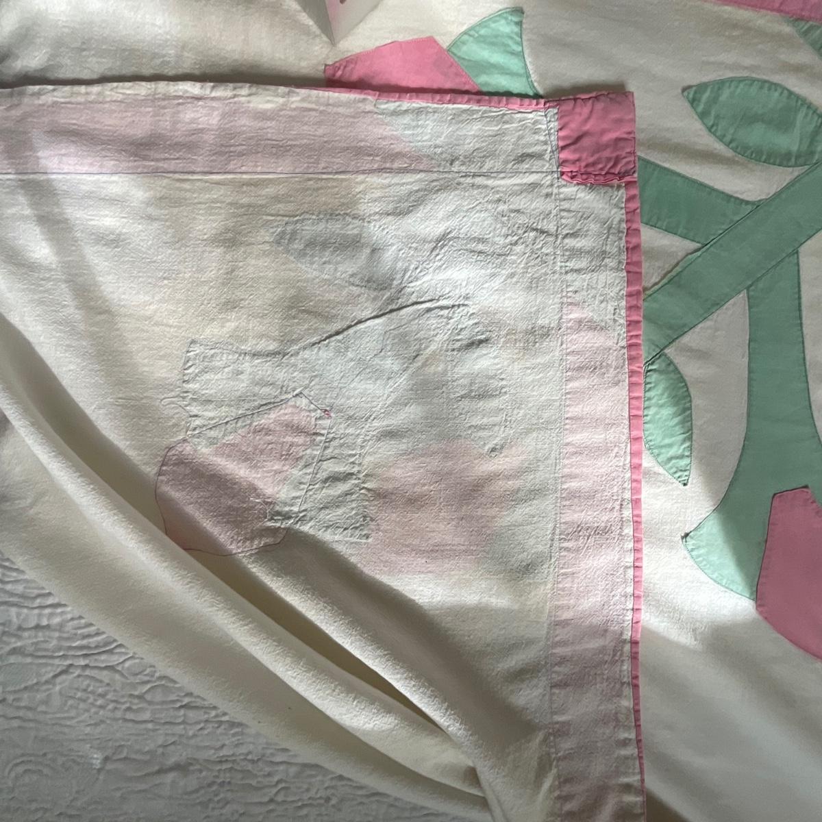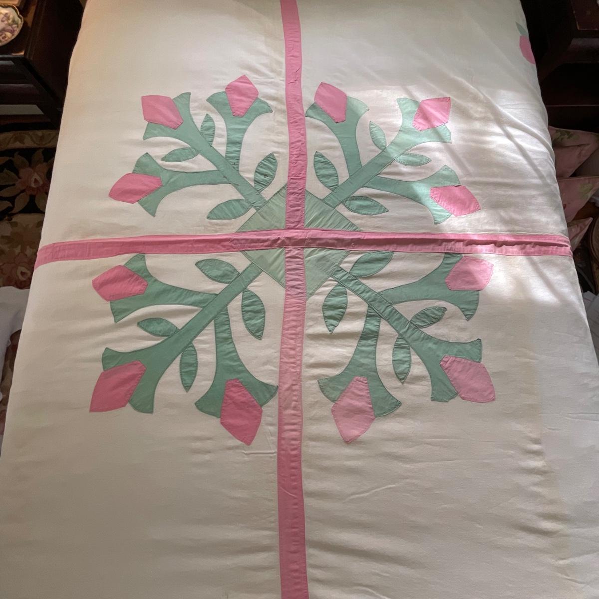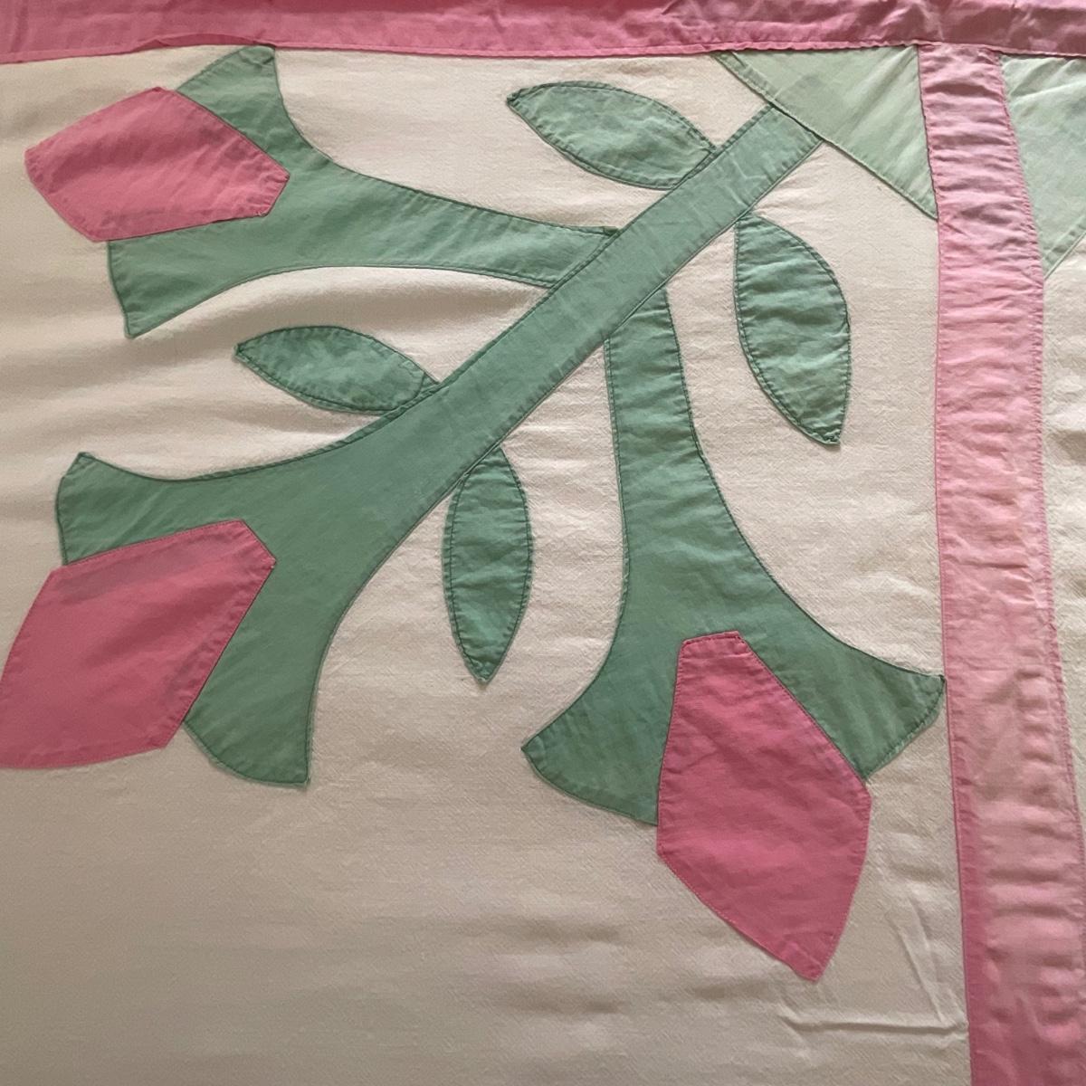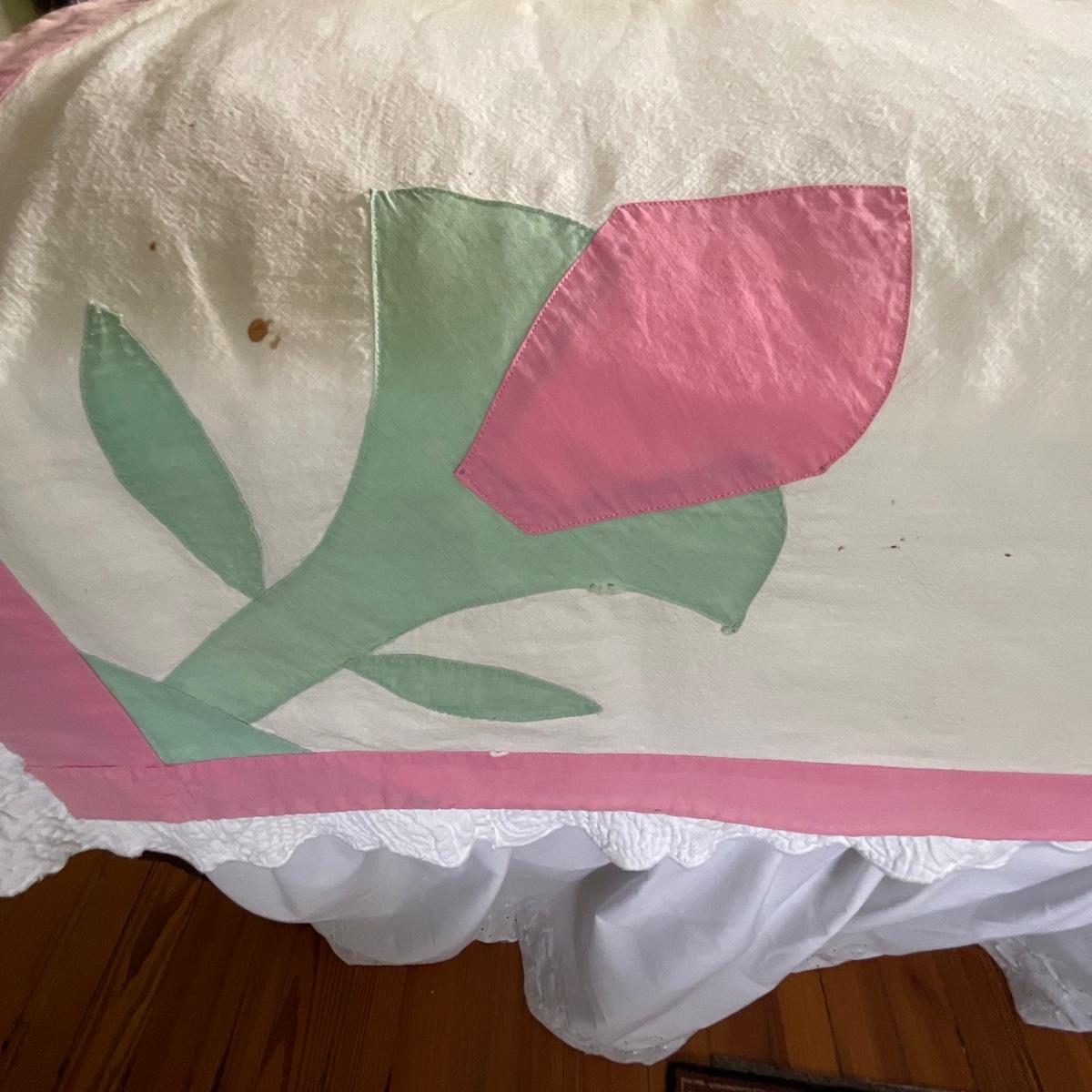 UD762 Antique Handmade Pink Tulip Coverlet Blanket