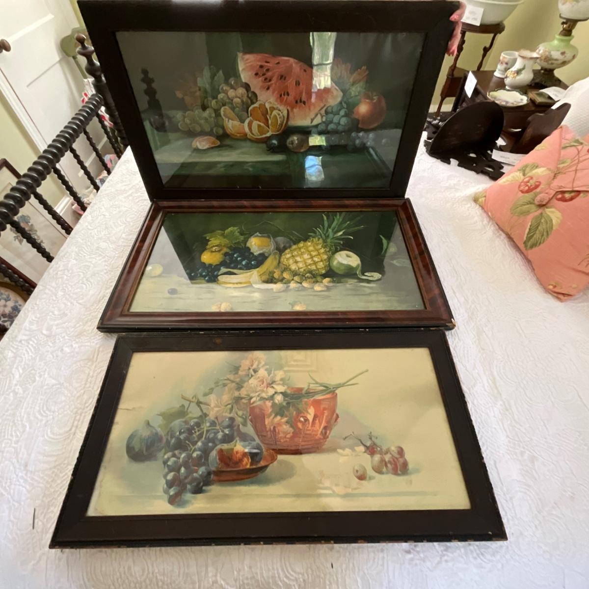 UD763 Lot of 3 Antique Victorian Framed Fruit Prints