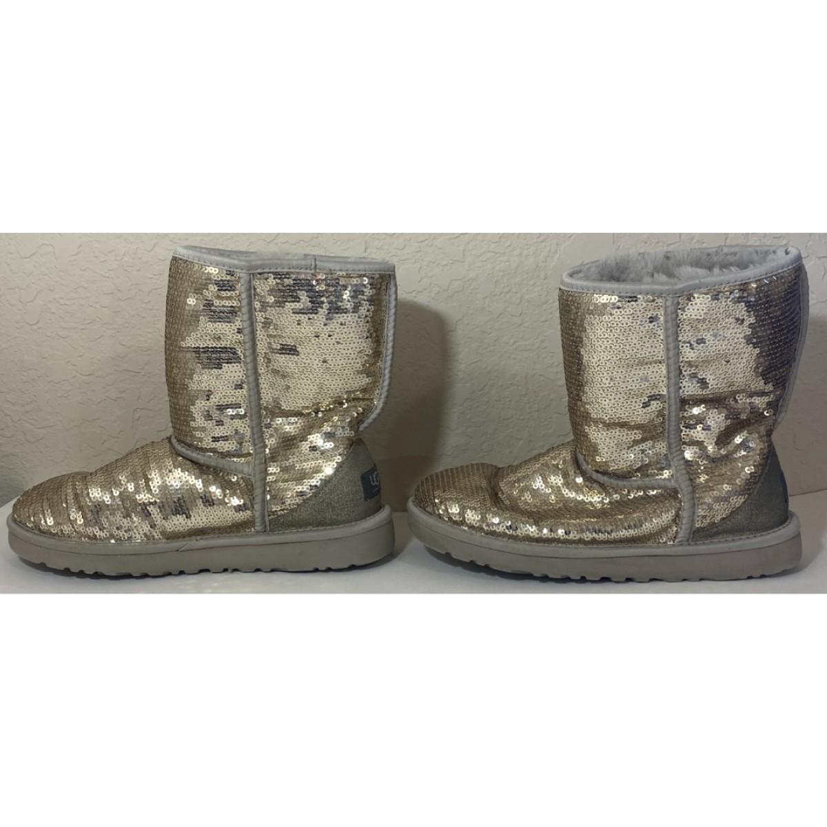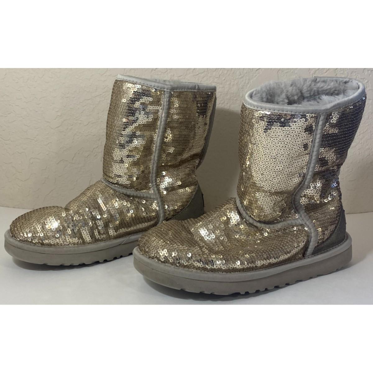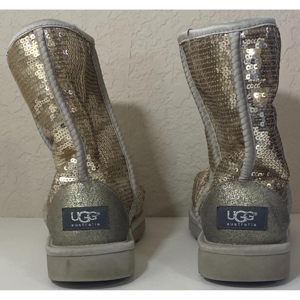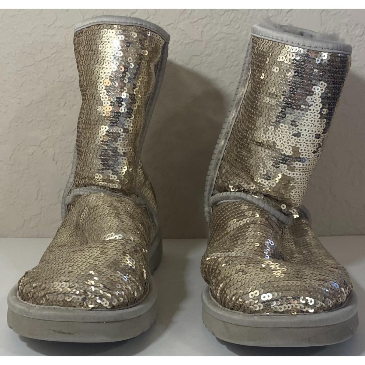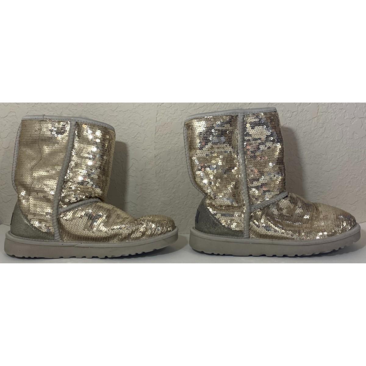 Ugg S/N 3161 Size 7 Silver Boots Textile Upper Genuine Sheepskin Lining