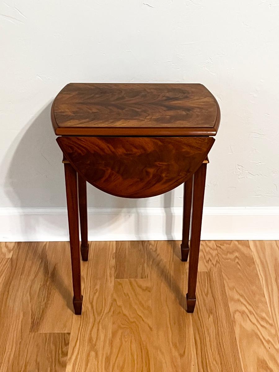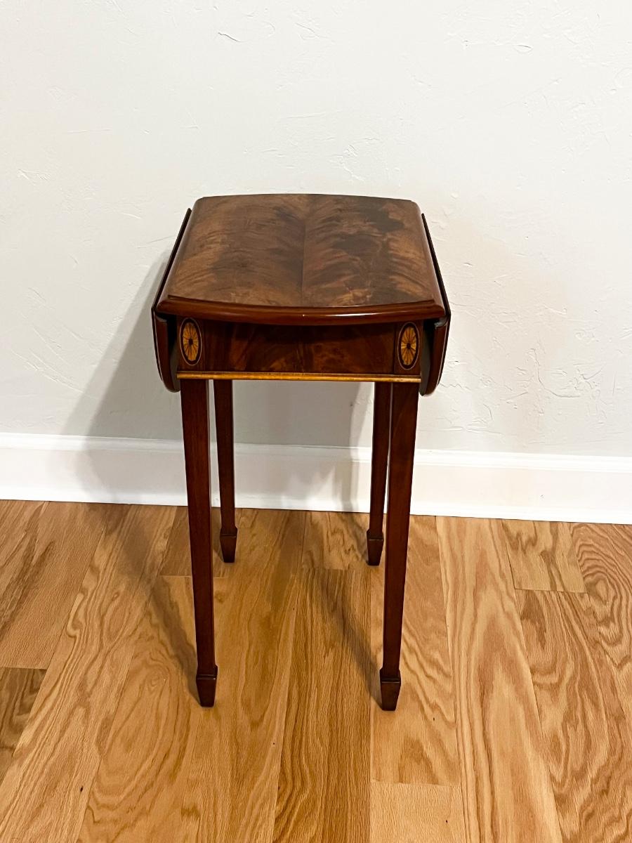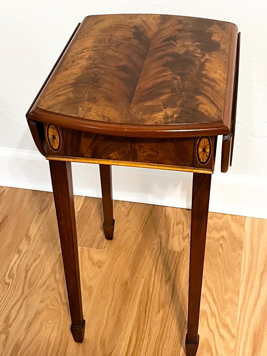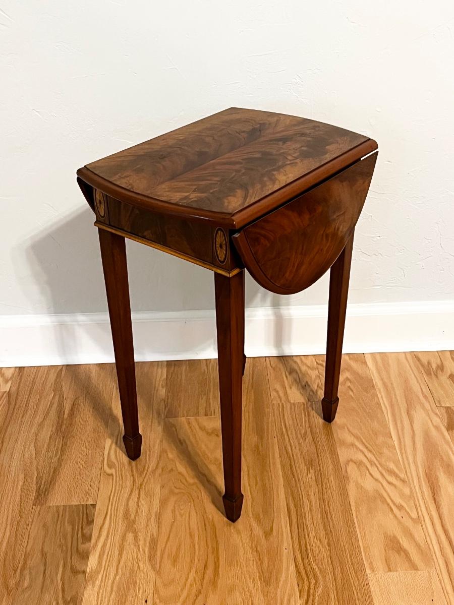 HEKMAN FURNITURE CO. ~ Mahogany Oval ~ Inlaid Drop Leaf End Table