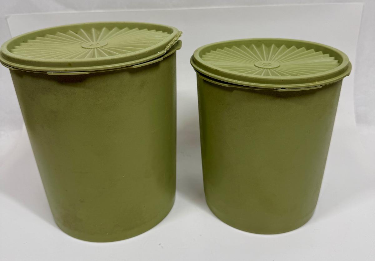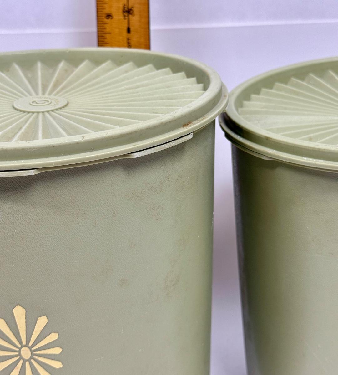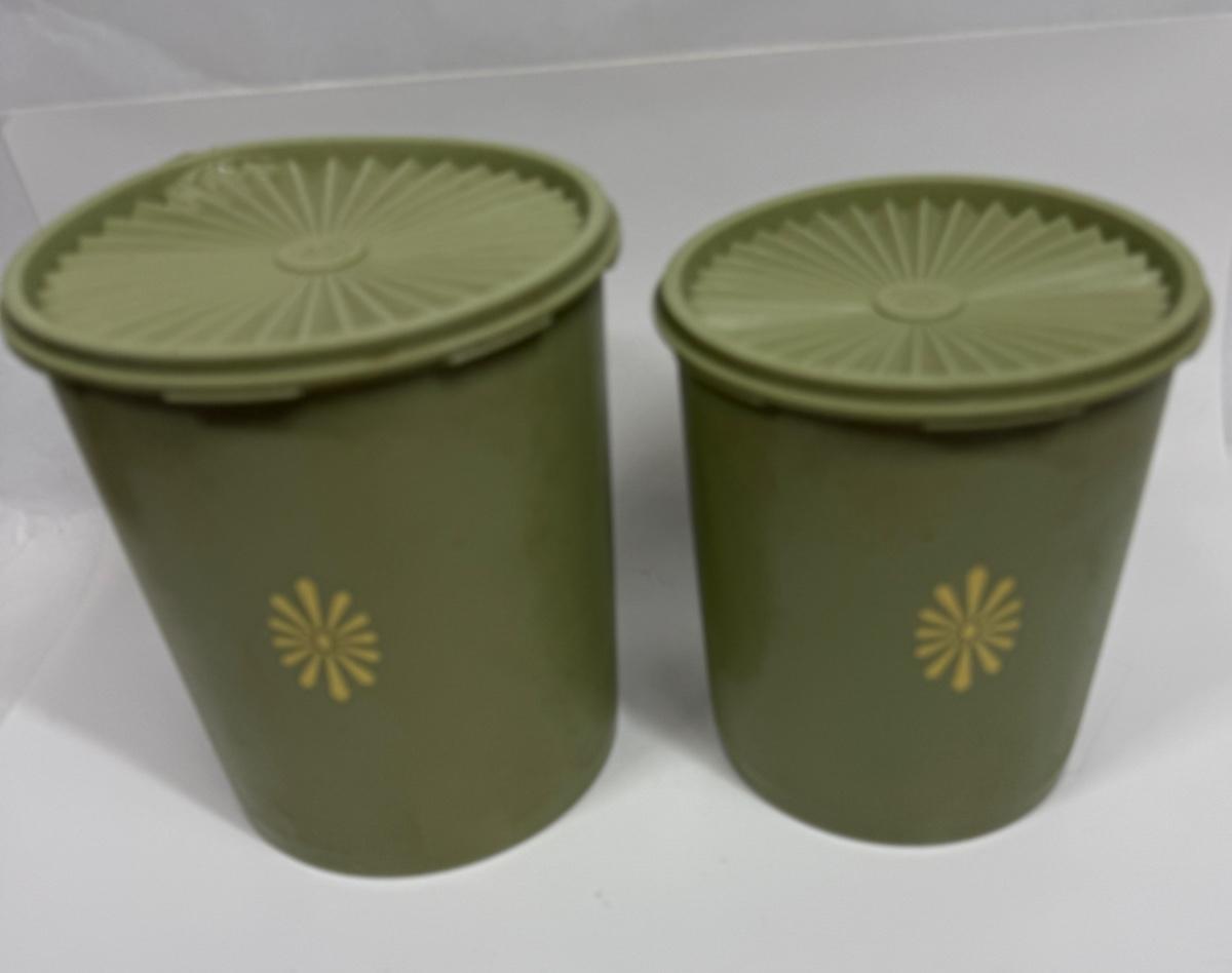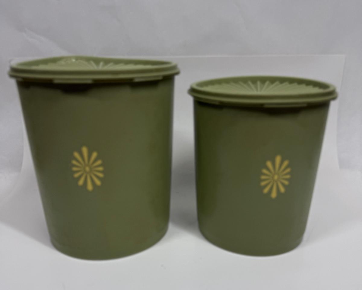 Vintage Tupperware Avocado Green Atomic Burst Nesting Canisters Set of 2