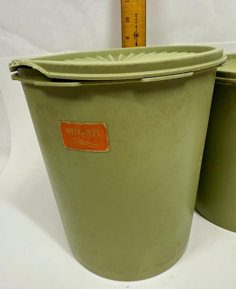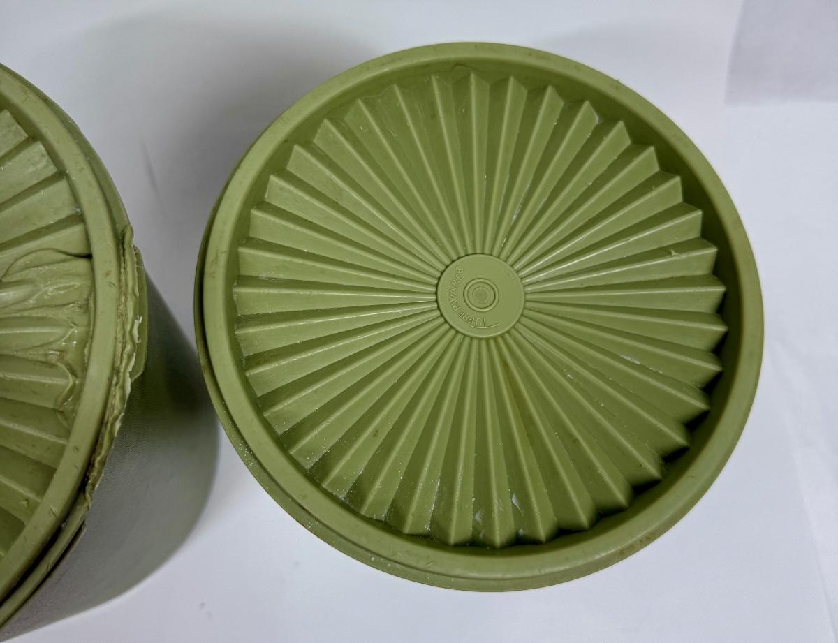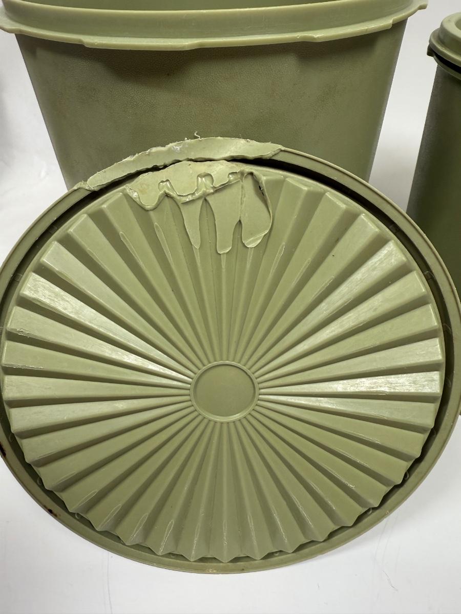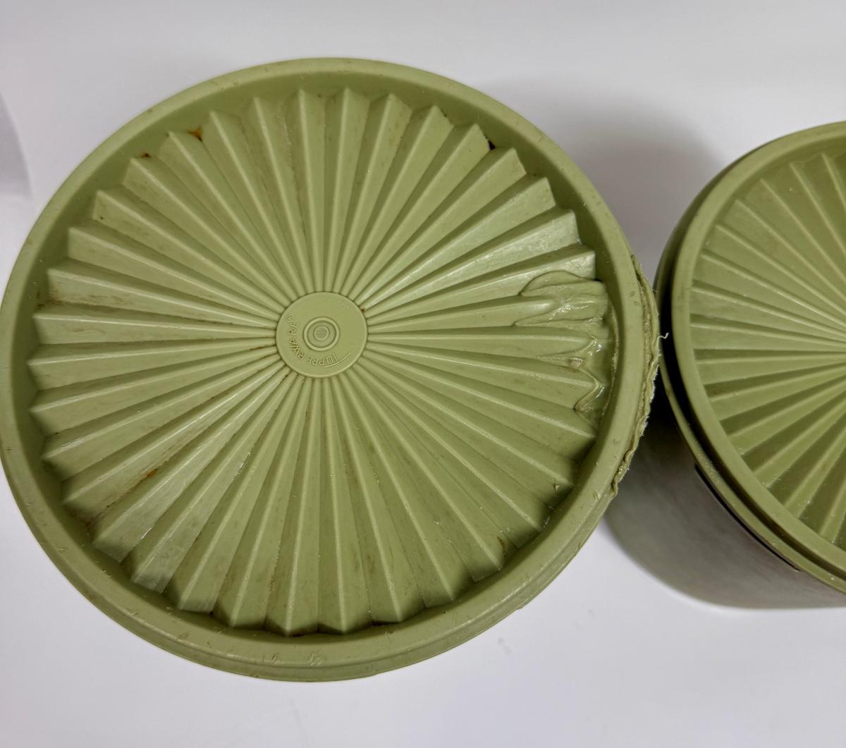 Vintage Tupperware Avocado Green Atomic Burst Nesting Canisters Set of 2