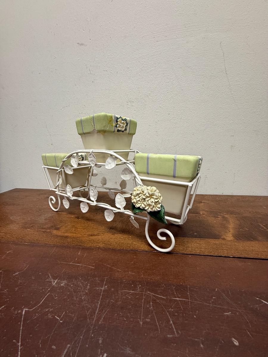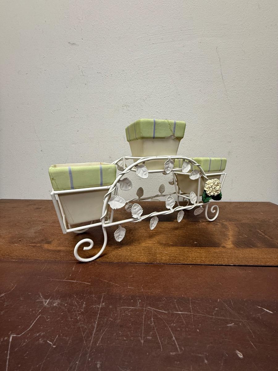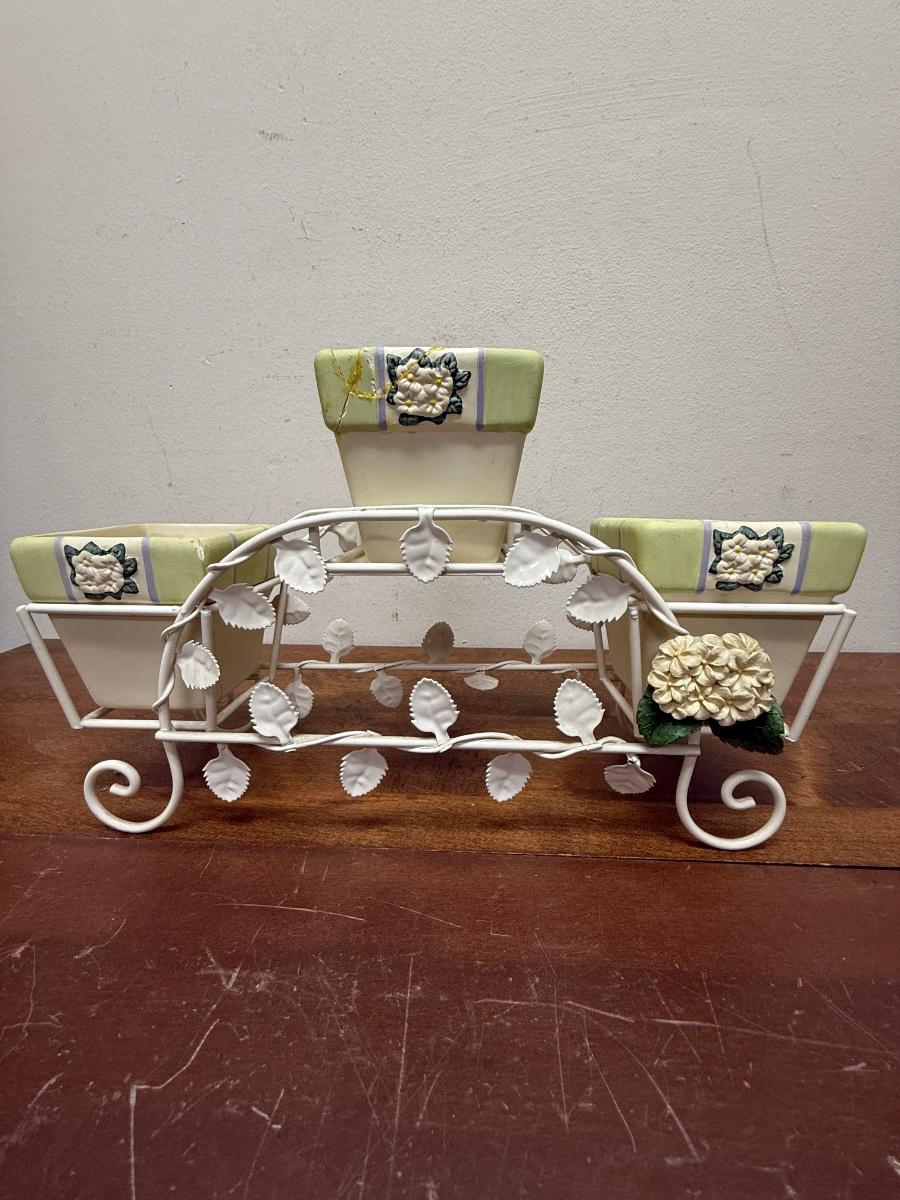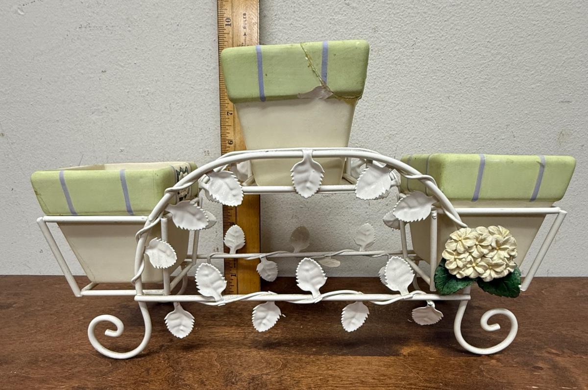 Pots are approx 3" x 3". One of the pots is cracked and repaired.