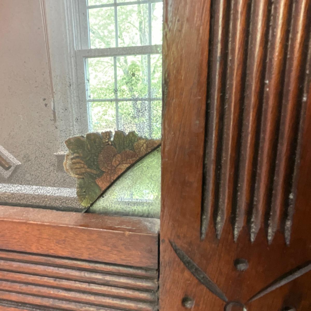 Glass mirror with three drawers, carved walnut , measuring 80.5" high x 36.5" wide x 17.5" deep