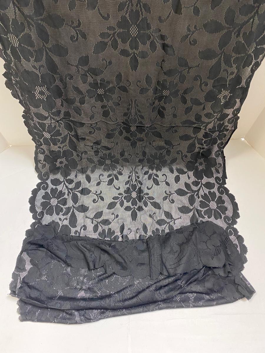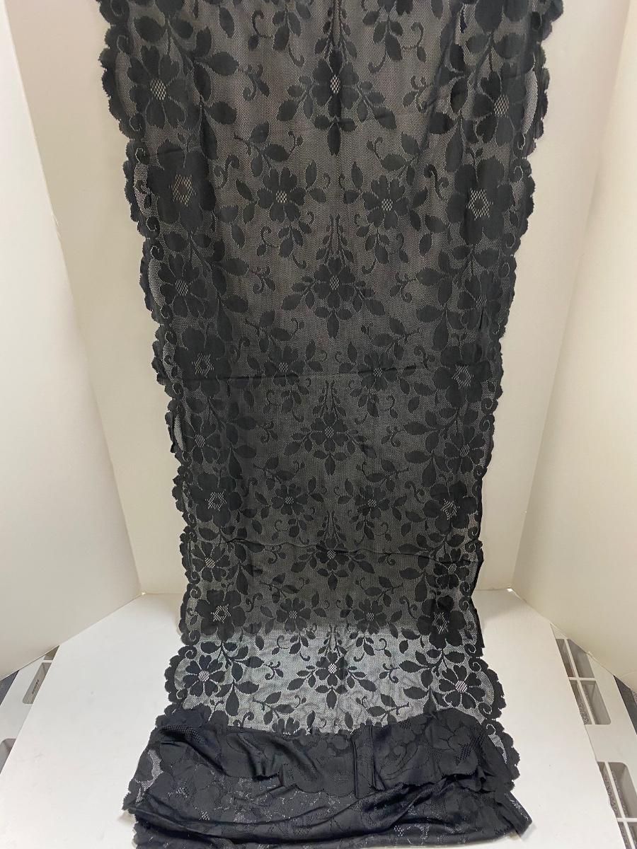 Black Floral Lace Table Runner. About 8' length. In good condition.