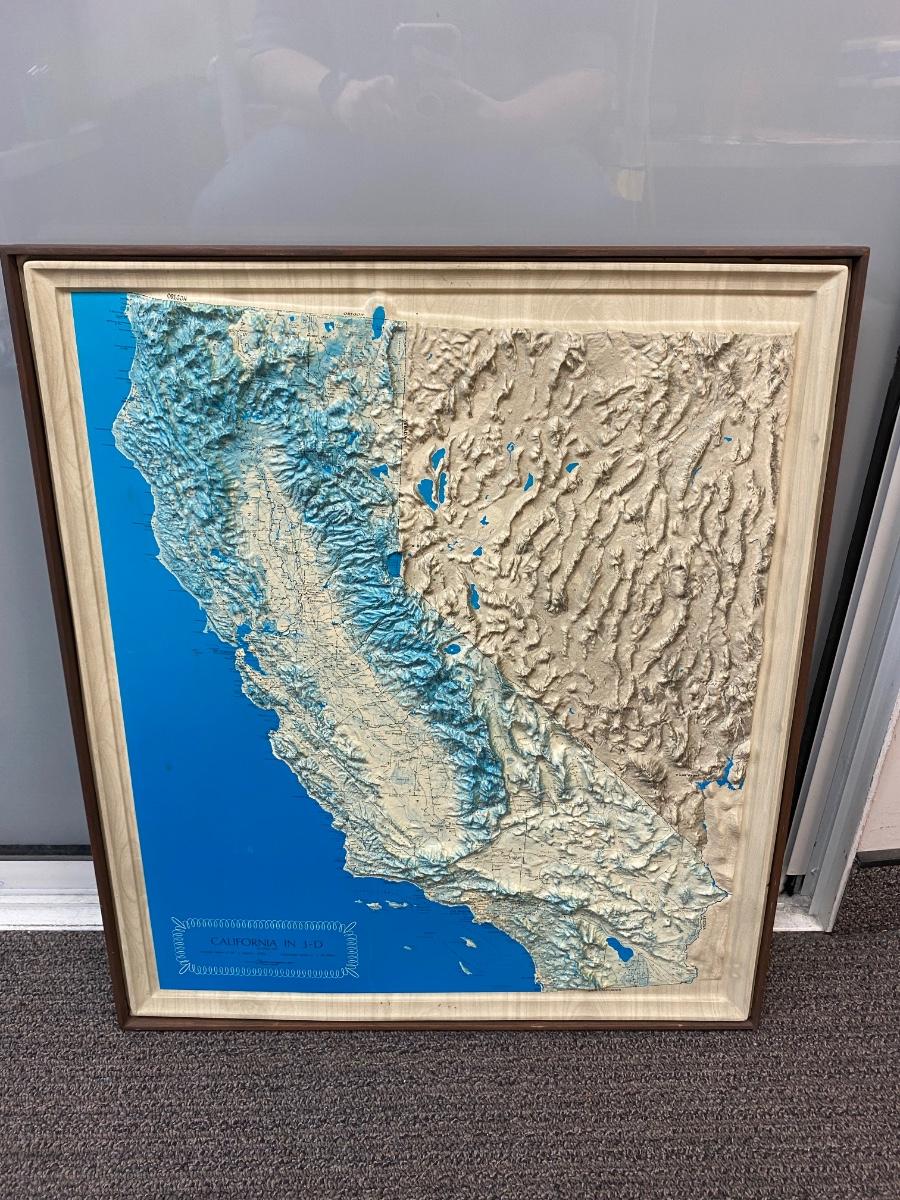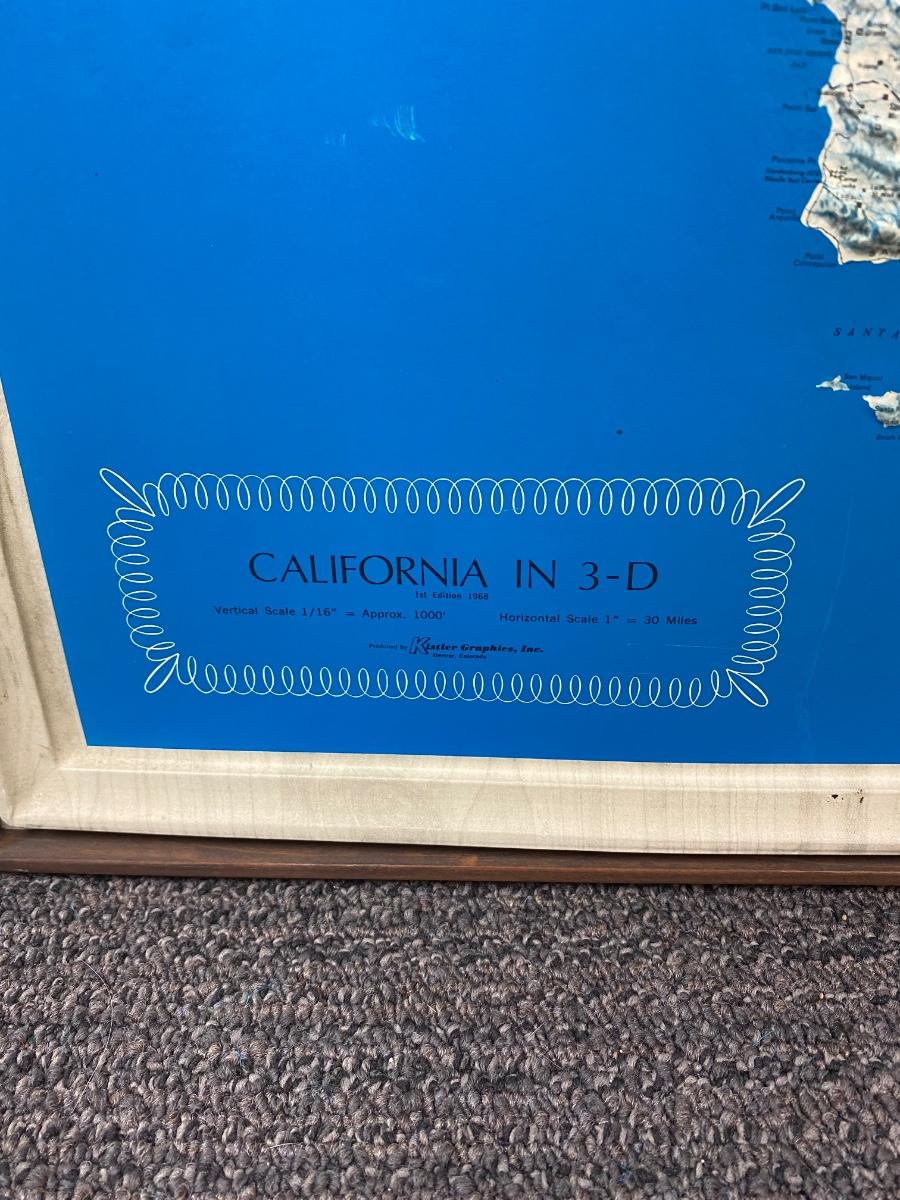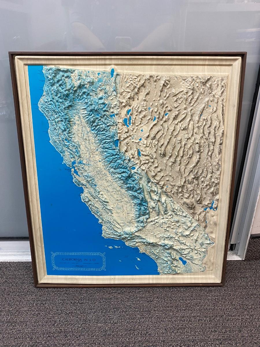 Retro Vintage Plastic Blow Mold 3D Elevation Map of California Framed