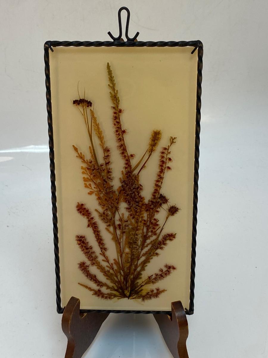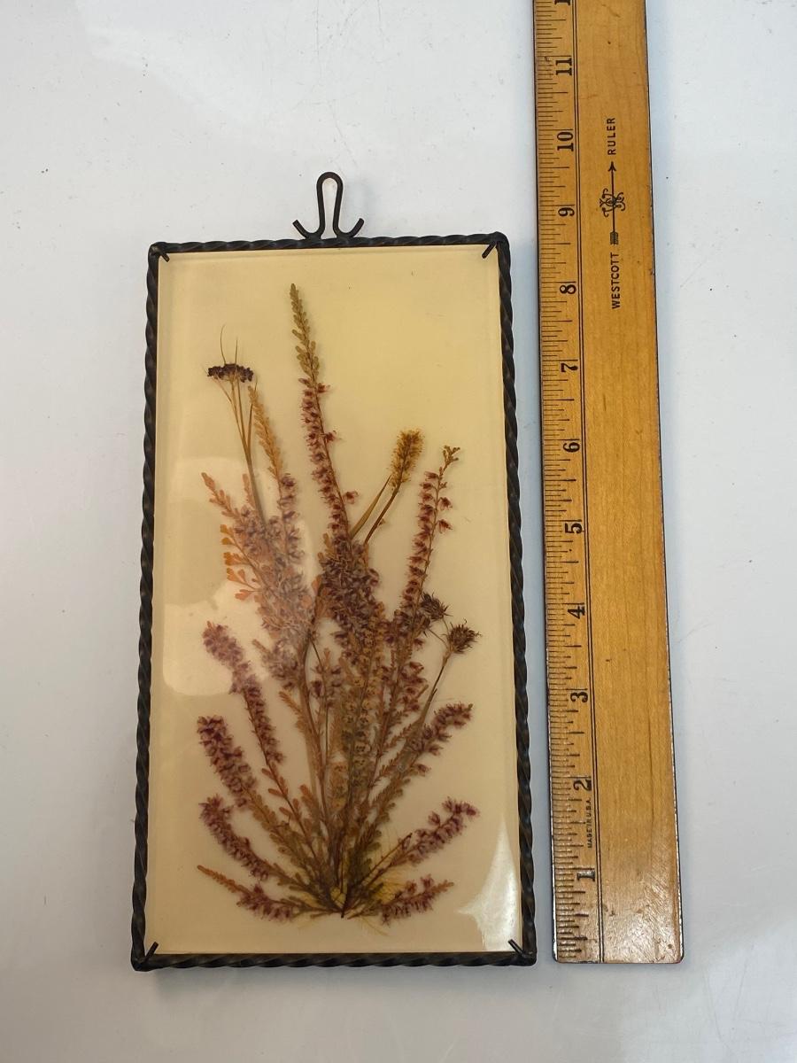 Hand Made Dried Plant Flowers in Resin Trivet Wall Art. Good vintage condition.