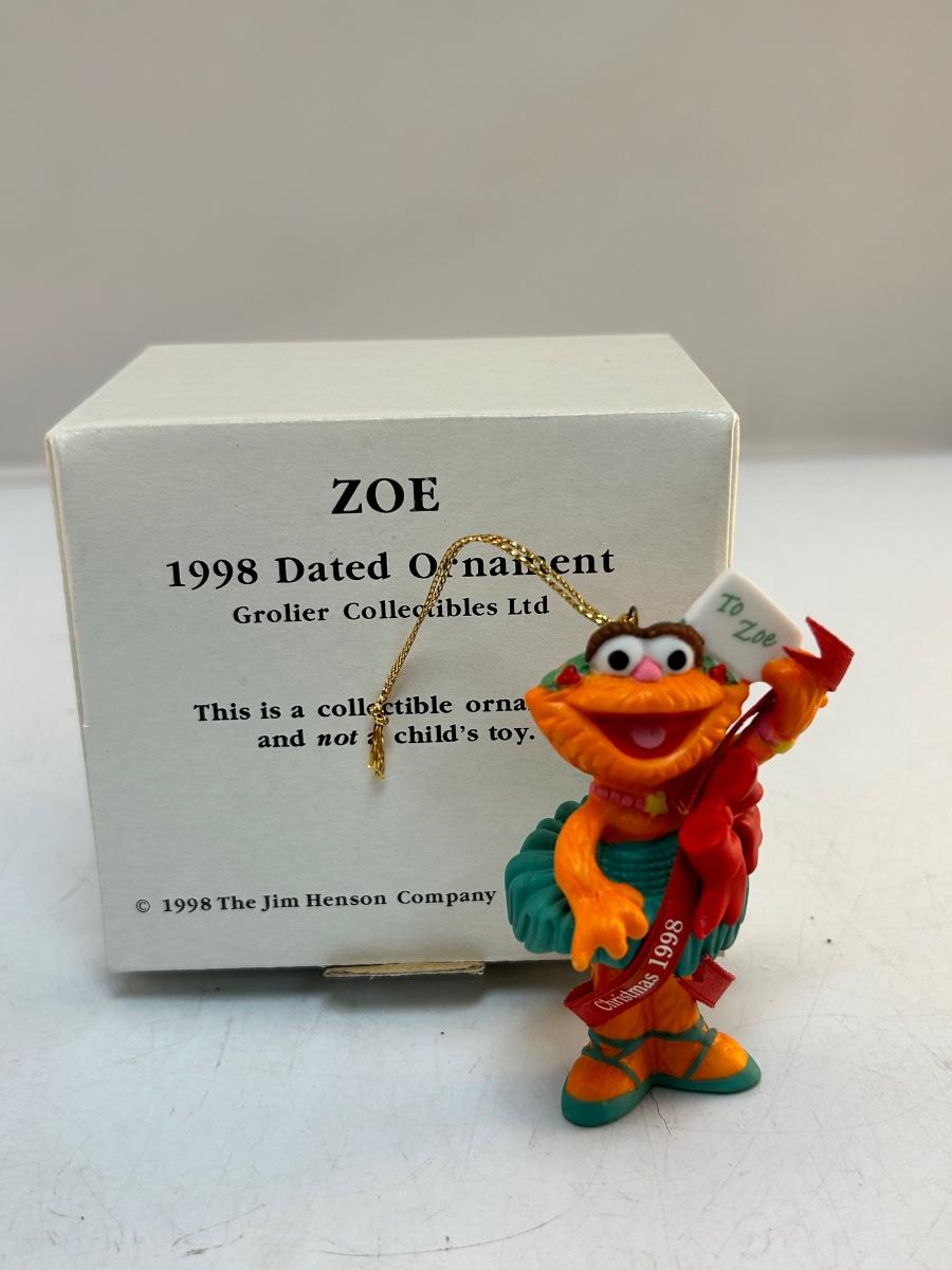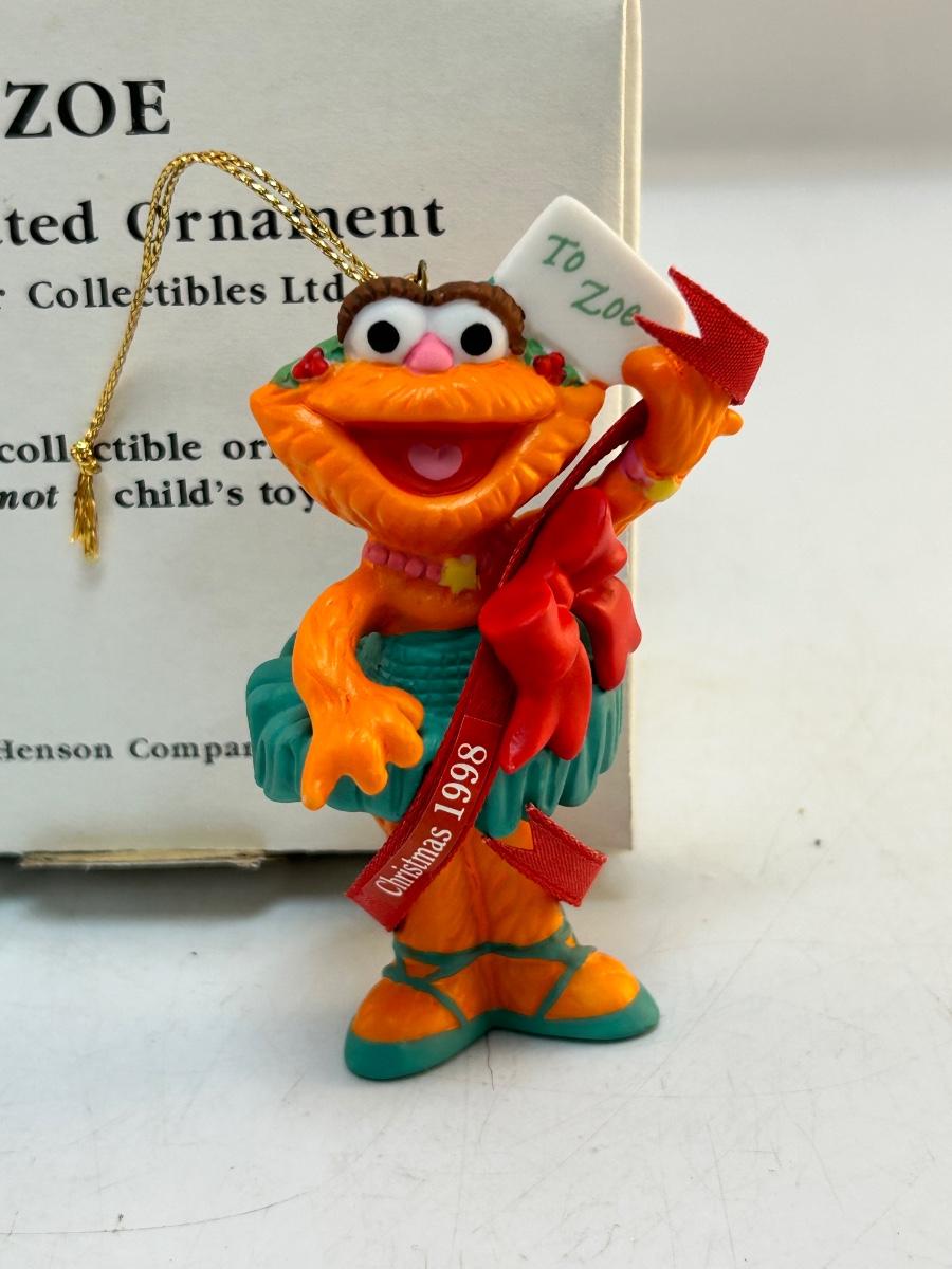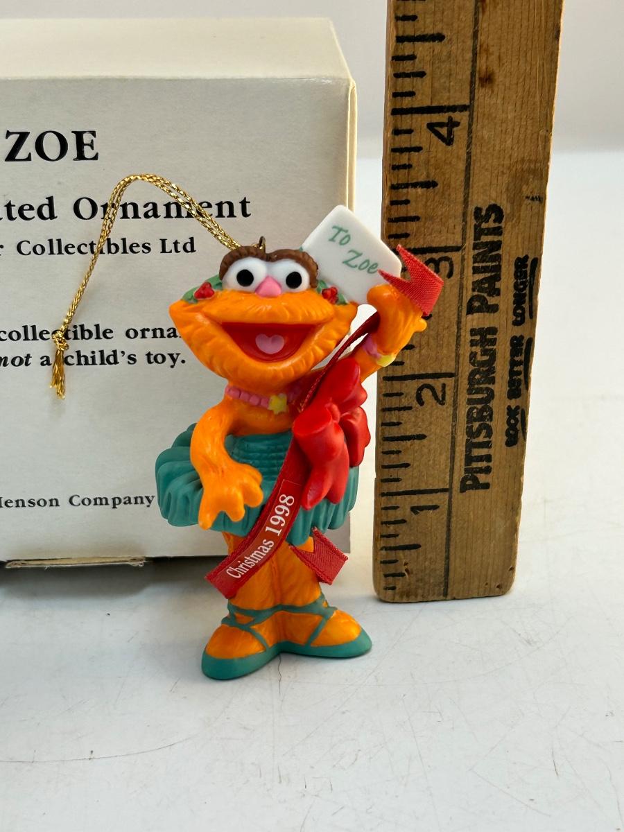 1998 Grolier Sesame Street Zoe Christmas Holiday Tree Ornament. Hard plastic. In original box.