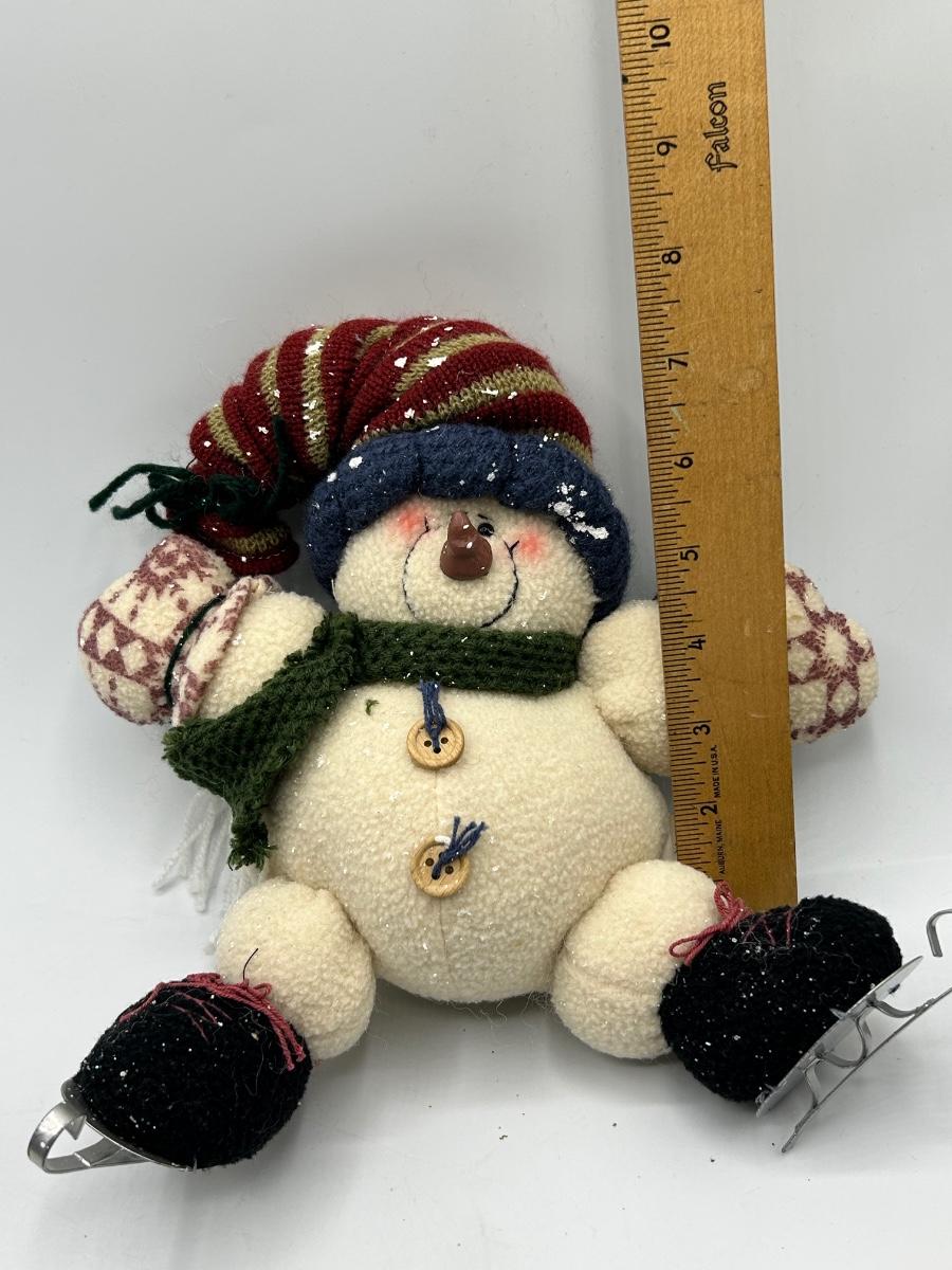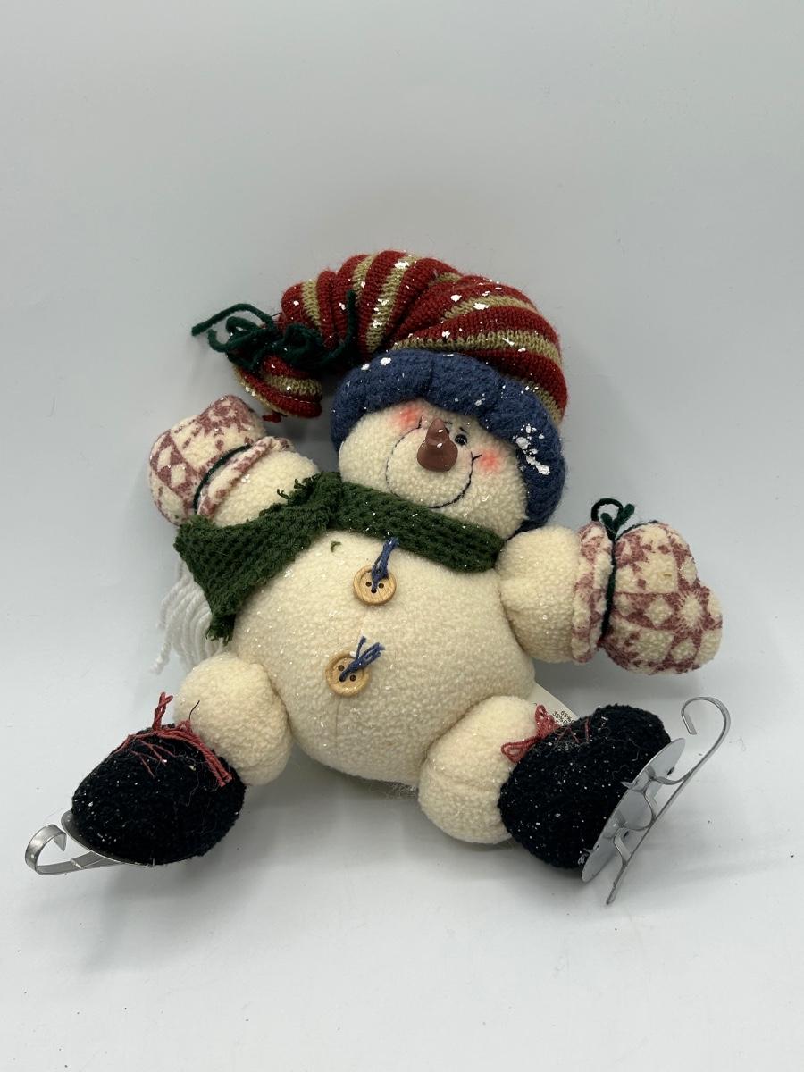 Cute Ice-Skating Snowman Plush Stuffed Animal Doll. In good condition. Weighted but so he sits like he fell skating.