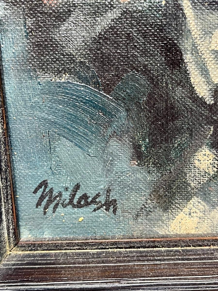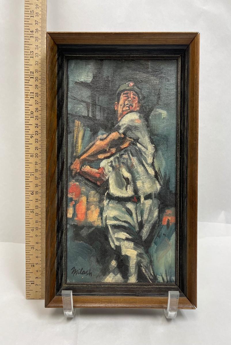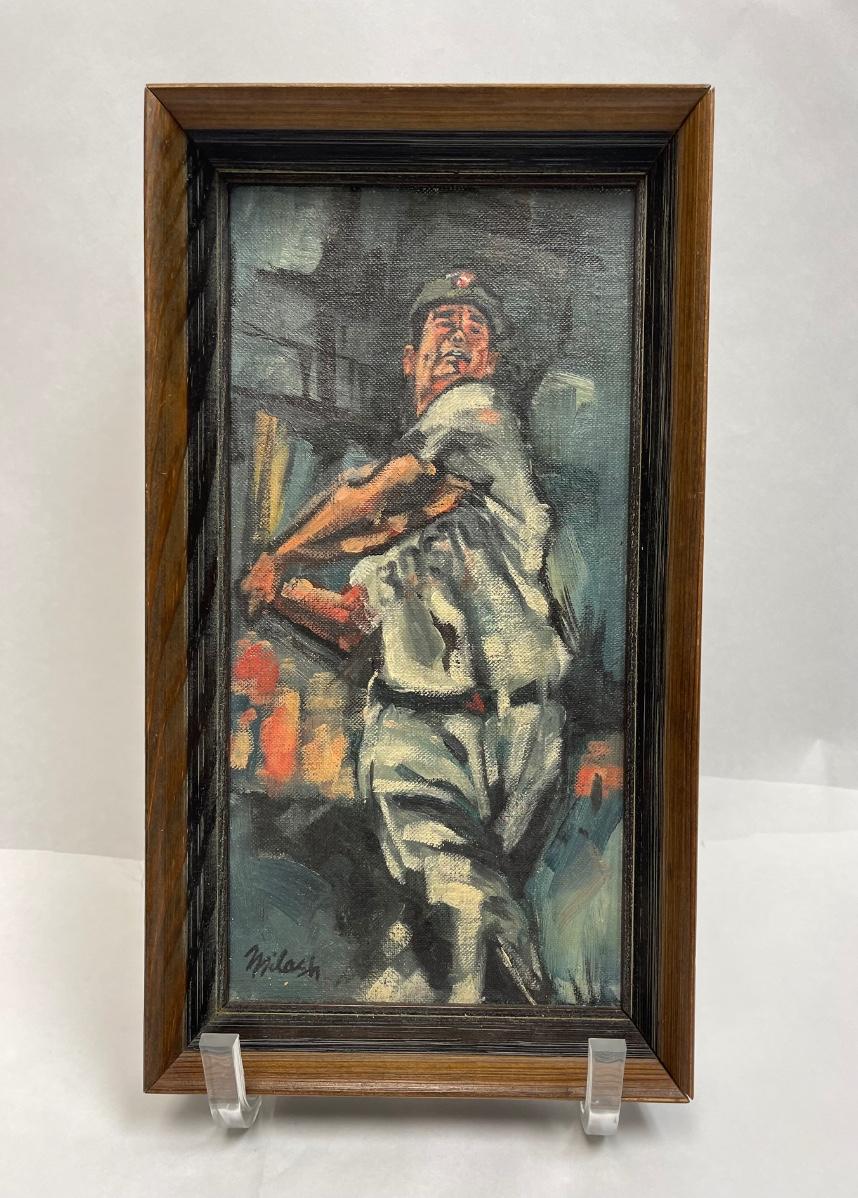 Ted Williams Framed Oil on Canvas Boston Red Sox Baseball Player Milosh Artist