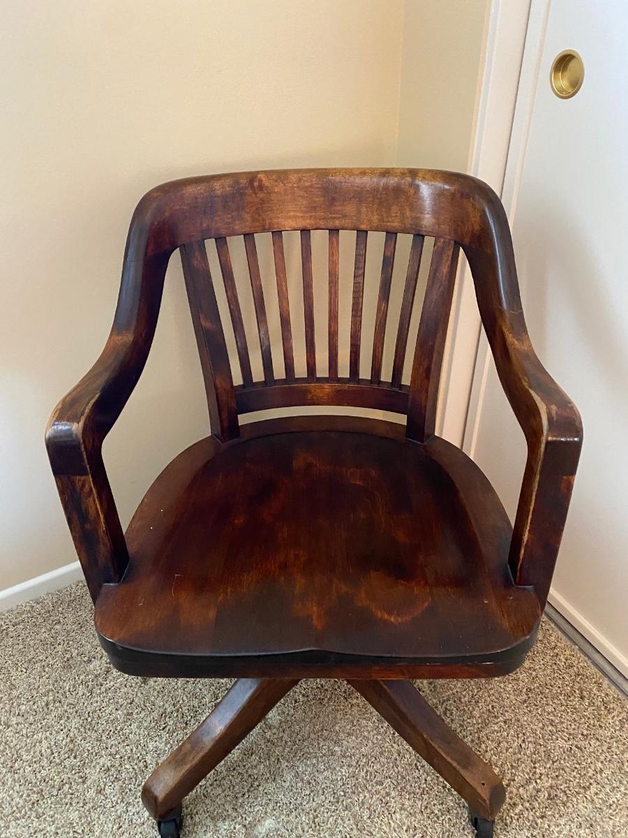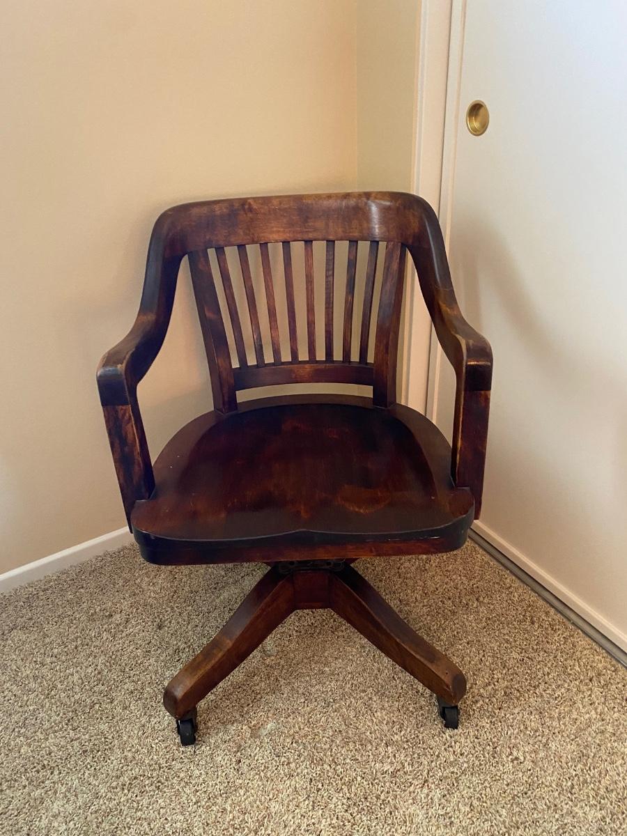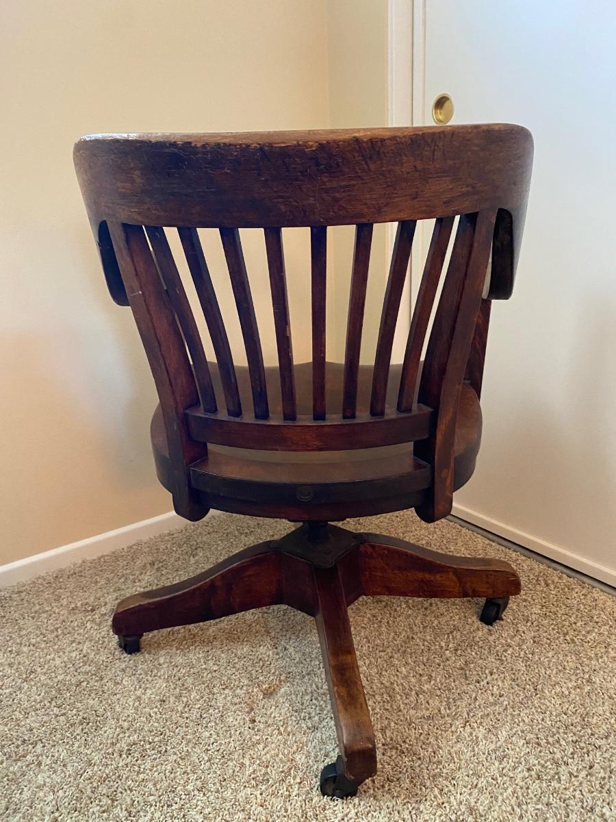 Vintage The Marble & Shattuck Chair Co. Wood Banker's Swivel Office Armchair
