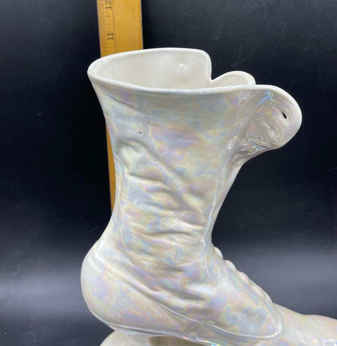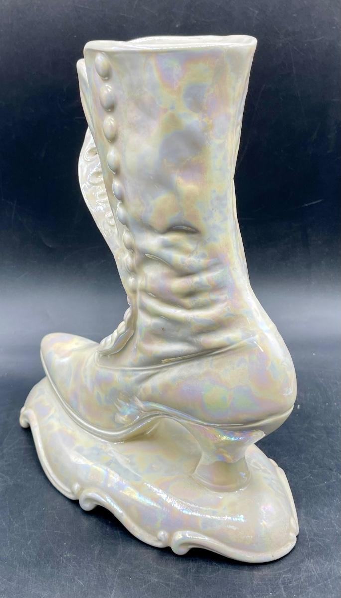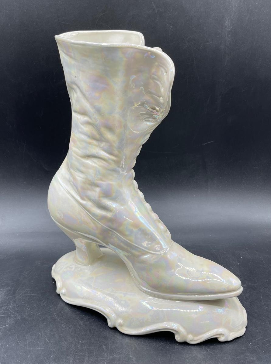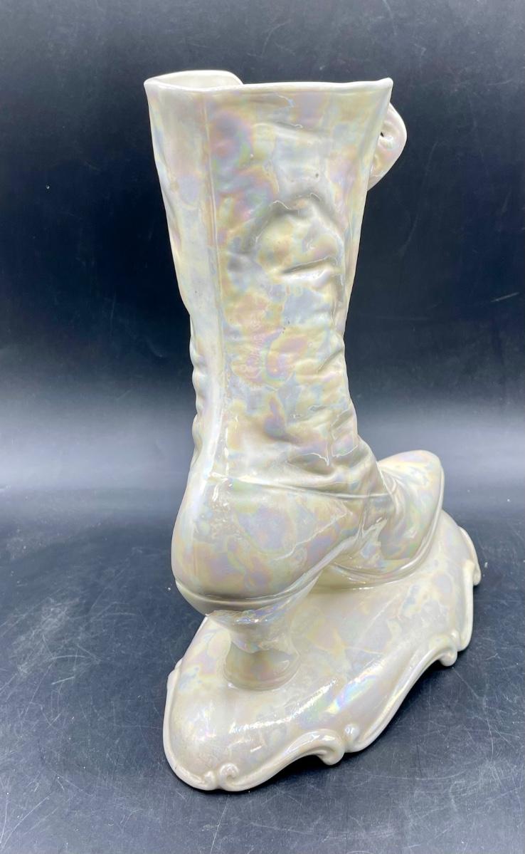 Atlantic Mold Opalescent White Lace-up Boot Vase
