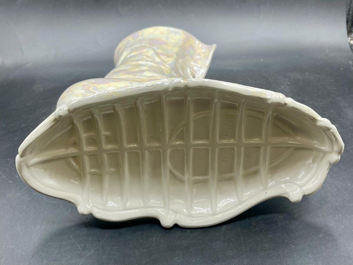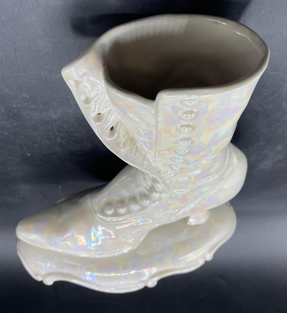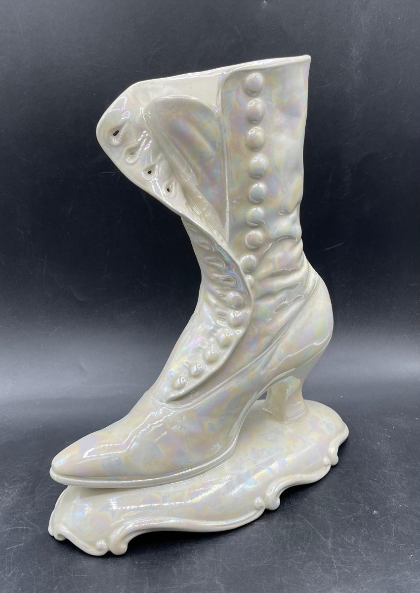 Atlantic Mold Opalescent White Lace-up Boot Vase