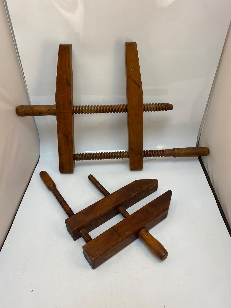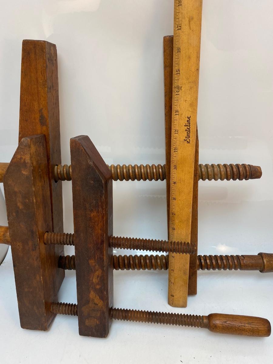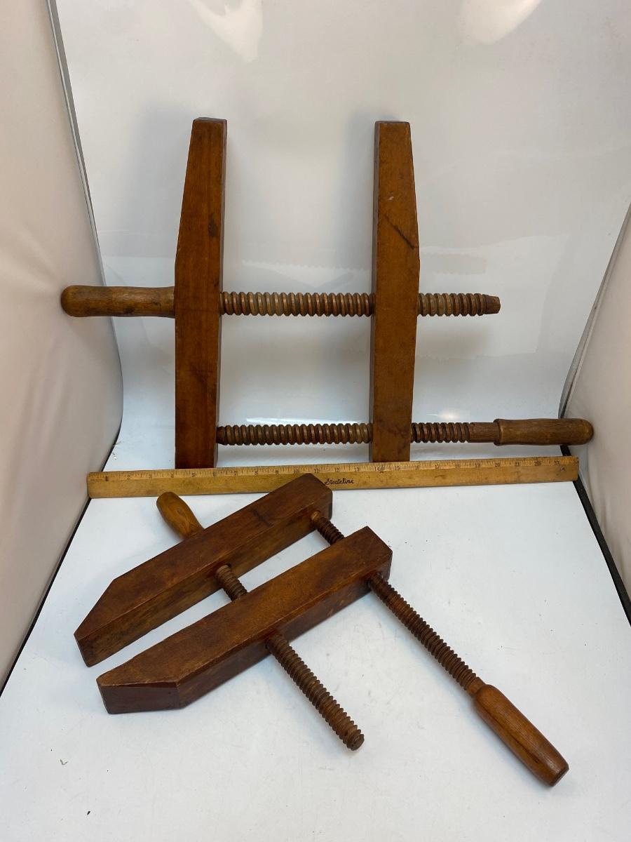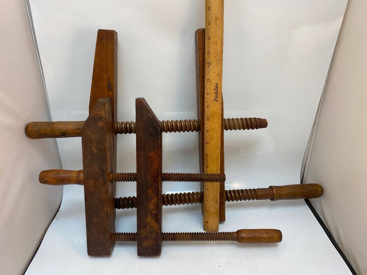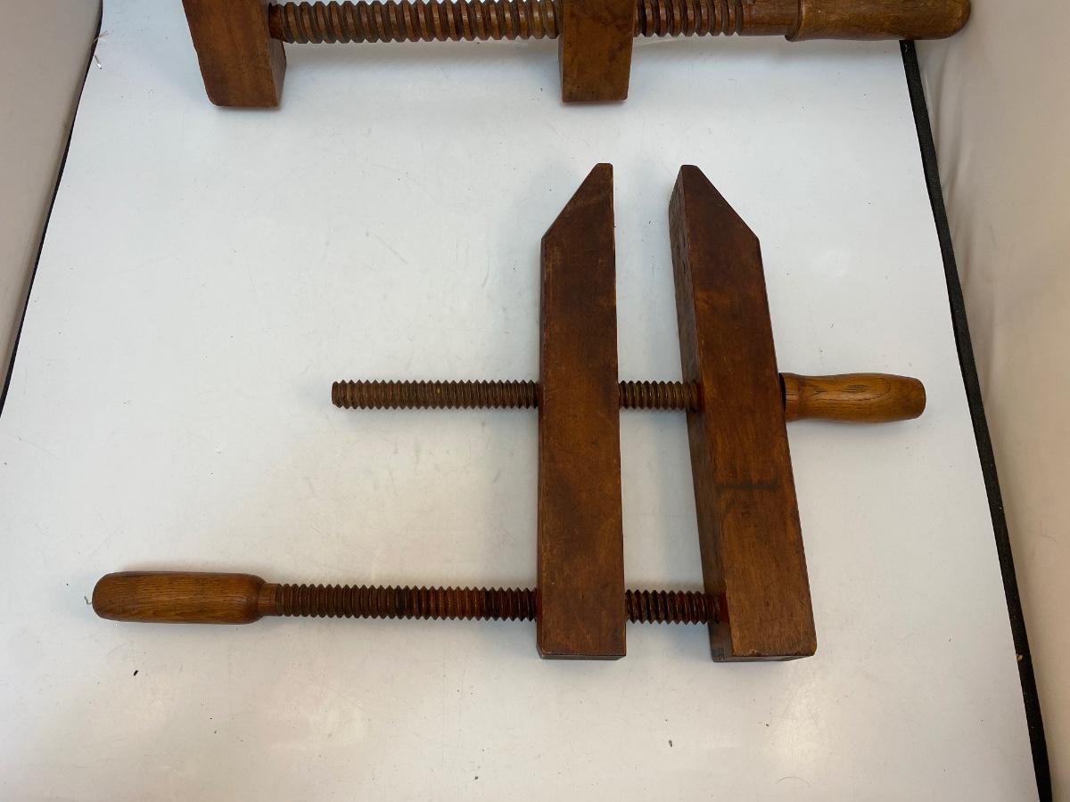 Pair of Large Jorgensen Style All Wood Antique Furniture Clamps R. Bliss & Co