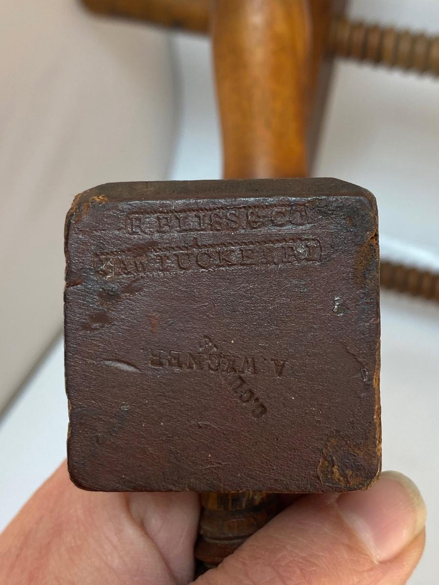 Pair of Large Jorgensen Style All Wood Antique Furniture Clamps R. Bliss & Co. All wood pieces. In good antique condition. There are stamped names on block ends, possibly maker and owner names. Large size.
