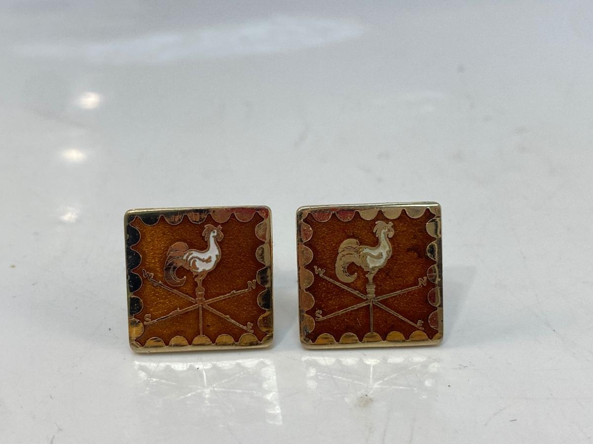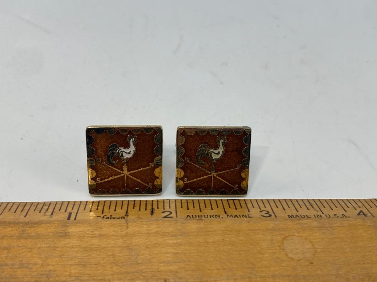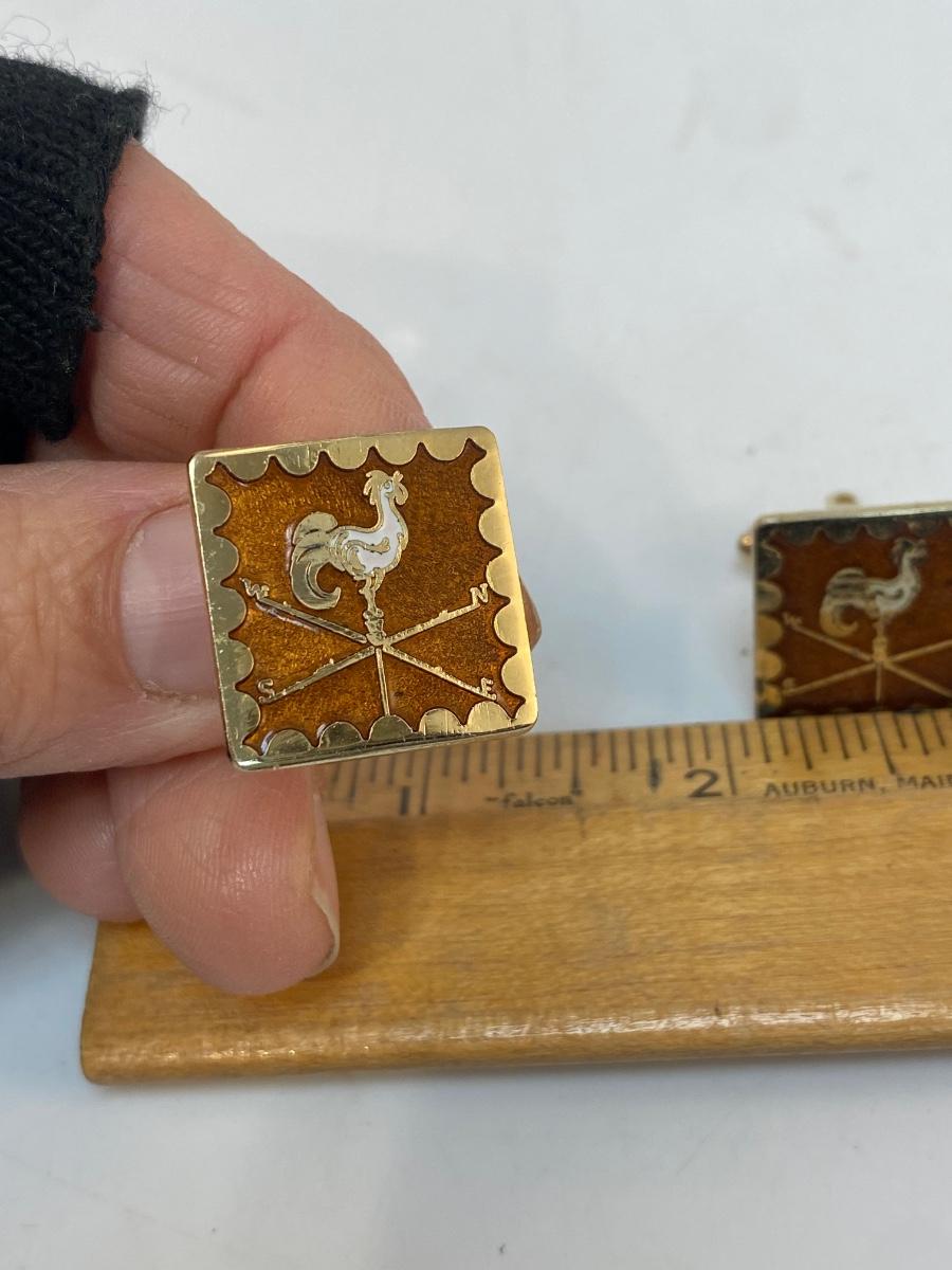 Vintage Enameled Rooster Weathervane Cuff Links Unbranded
