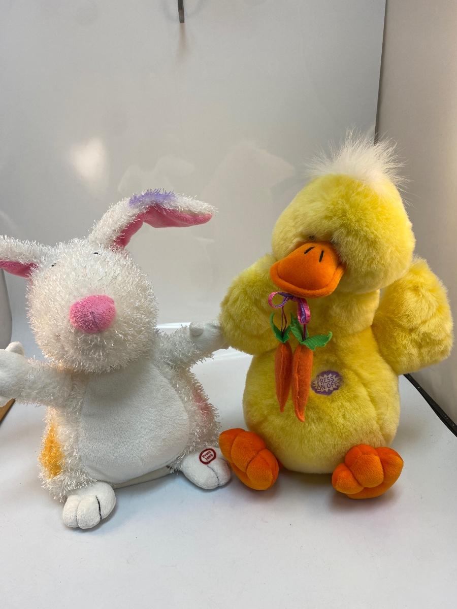 Pair of Easter Music Singing Stuffed Animals Bunny Rabbit & Duckling