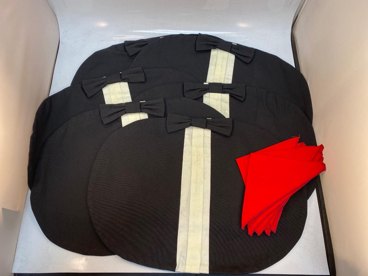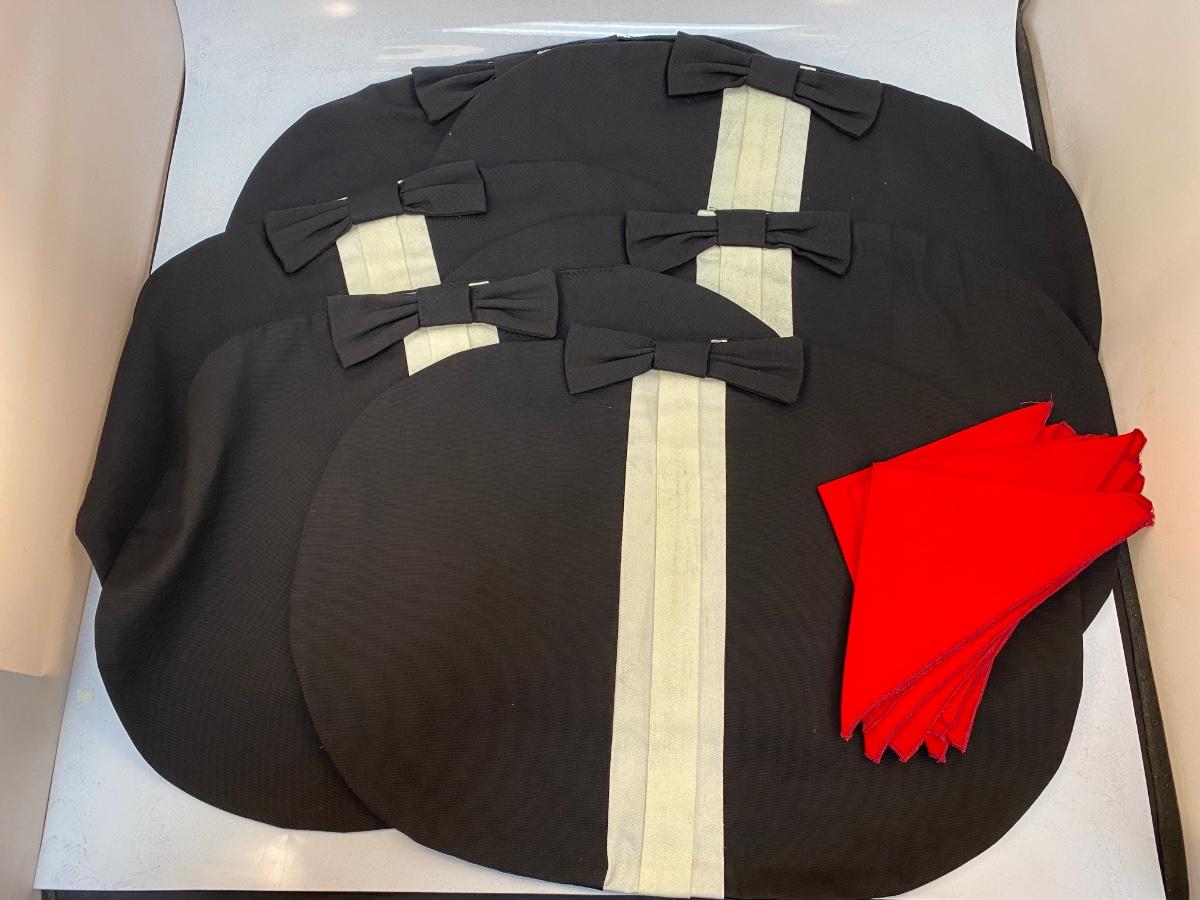 Set of 6 Vintage Black Tie Tuxedo Placemats with Red Dinner Napkins