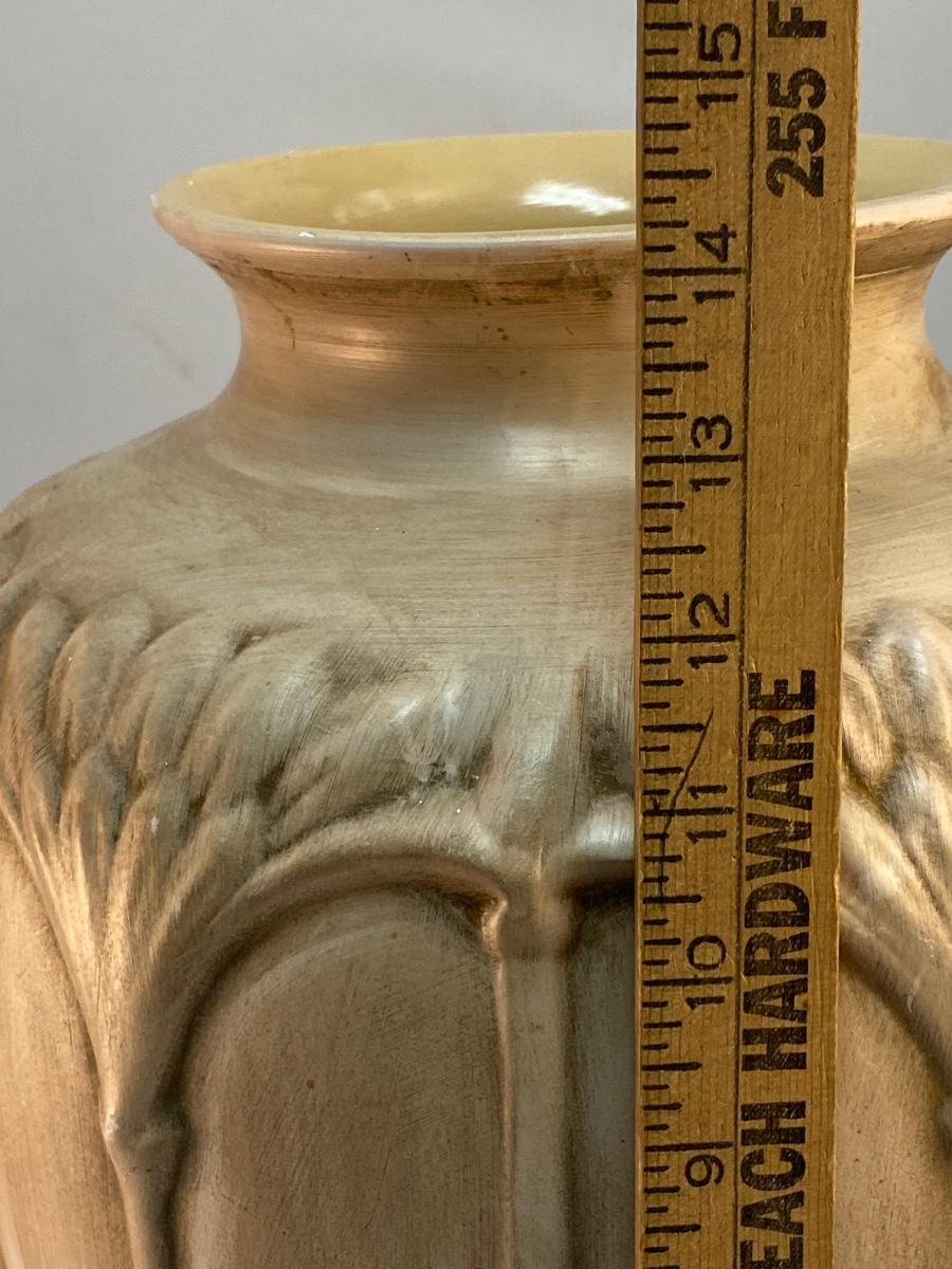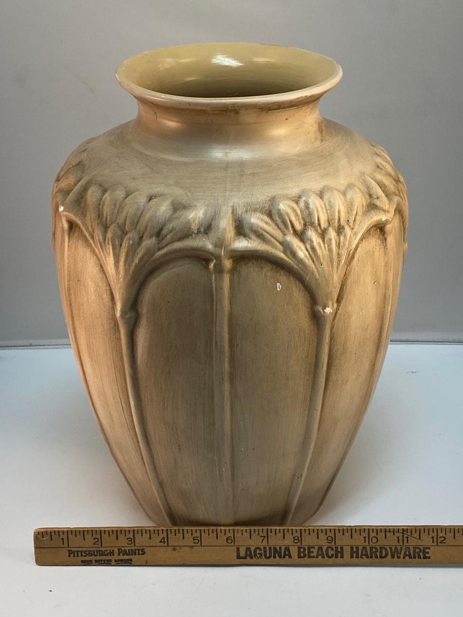 Large Artisan Hand Made Pottery Vase Urn Pot Made in Spain. In good displayable condition. There is a couple very small surface chips. See photos. About 14" size.