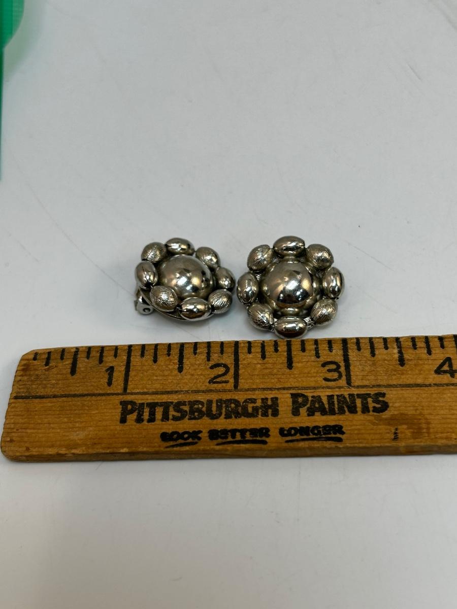 Pair of Vintage Silver Tone Button Style Clip on Earrings