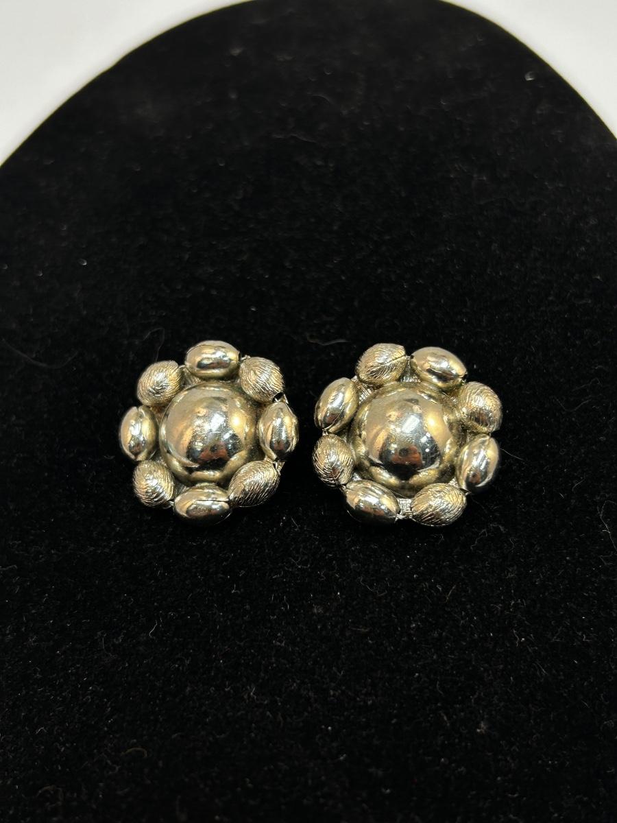 Pair of Vintage Silver Tone Button Style Clip on Earrings. In good condition.