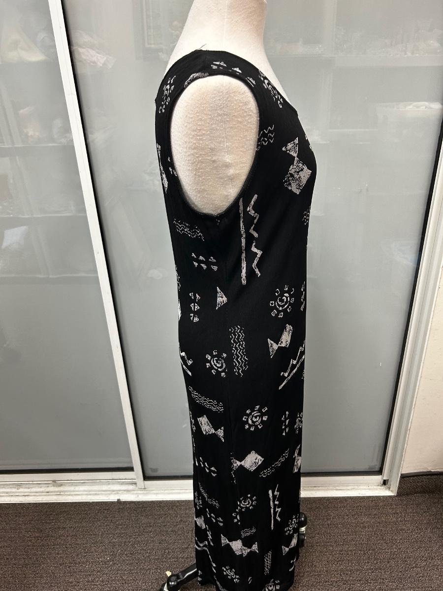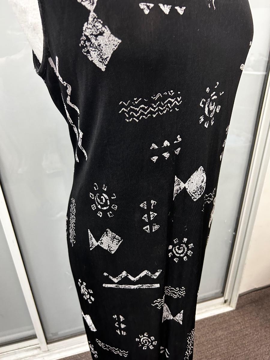 Sleeveless Maxi Black & White Body Con Summer Tropical Tribal Print Dress. Stretch to fabric. No tags, size medium.