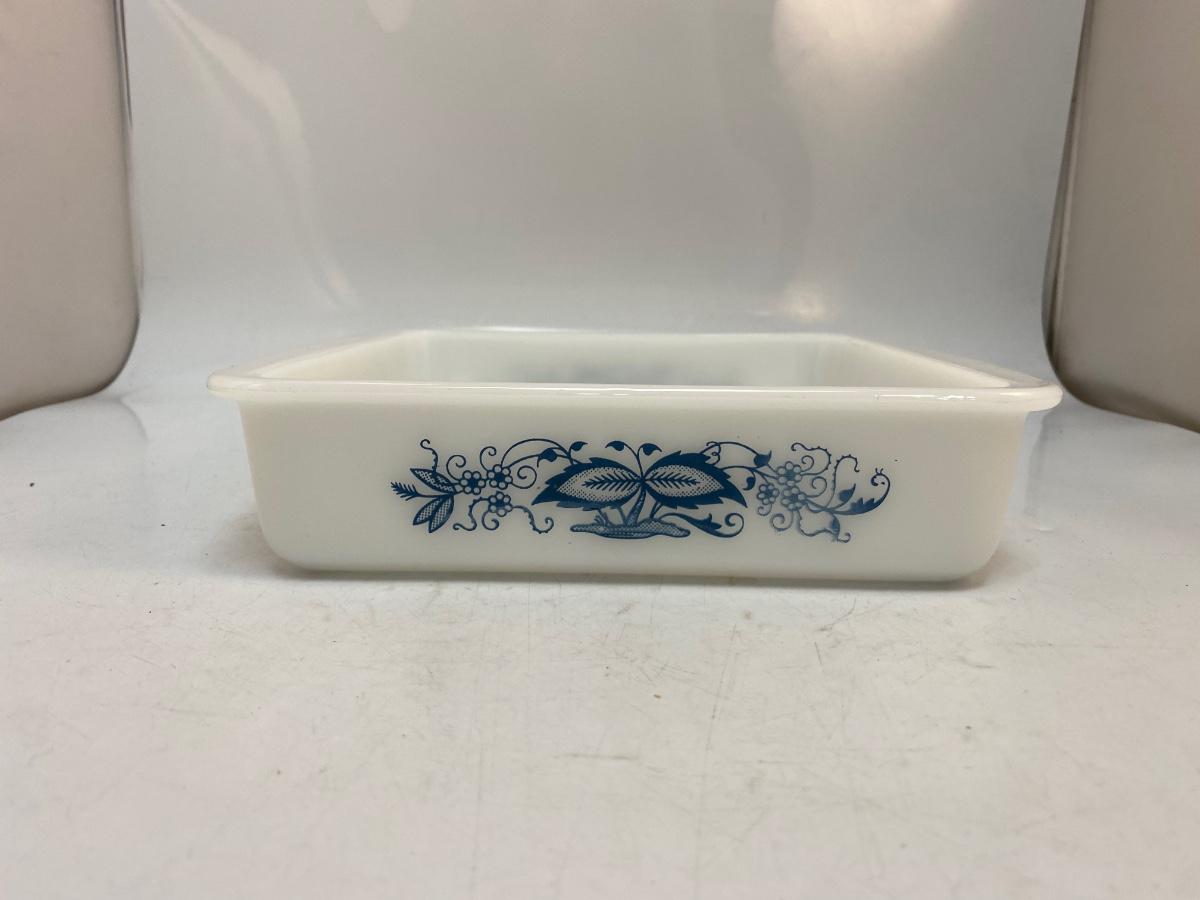 Vintage Square Glasbake 9" Baking Dish Brownie Pan Blue Onion Pattern. In good condition.