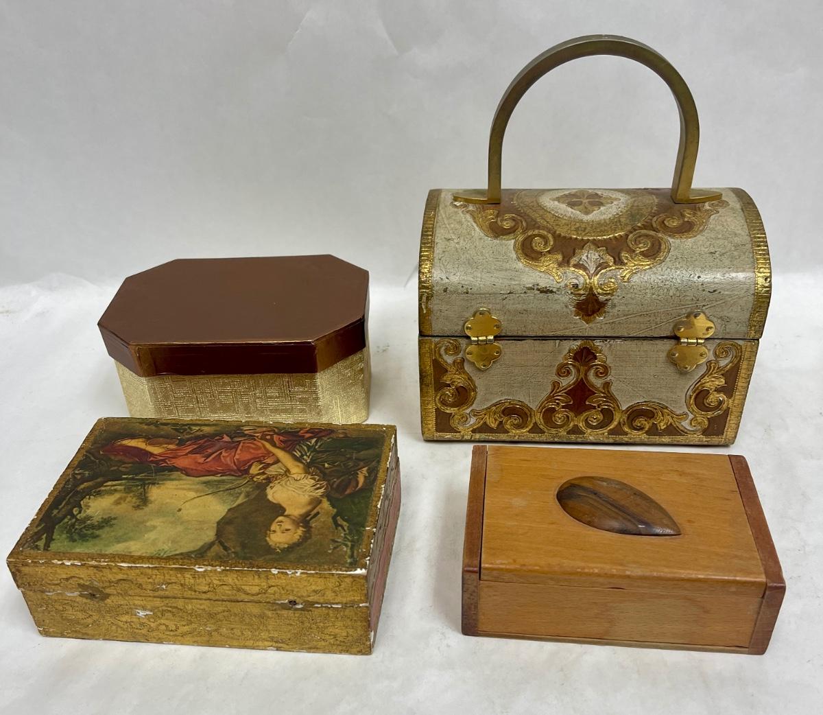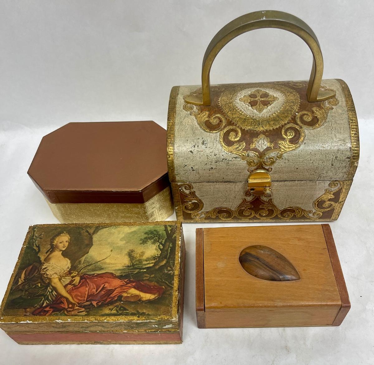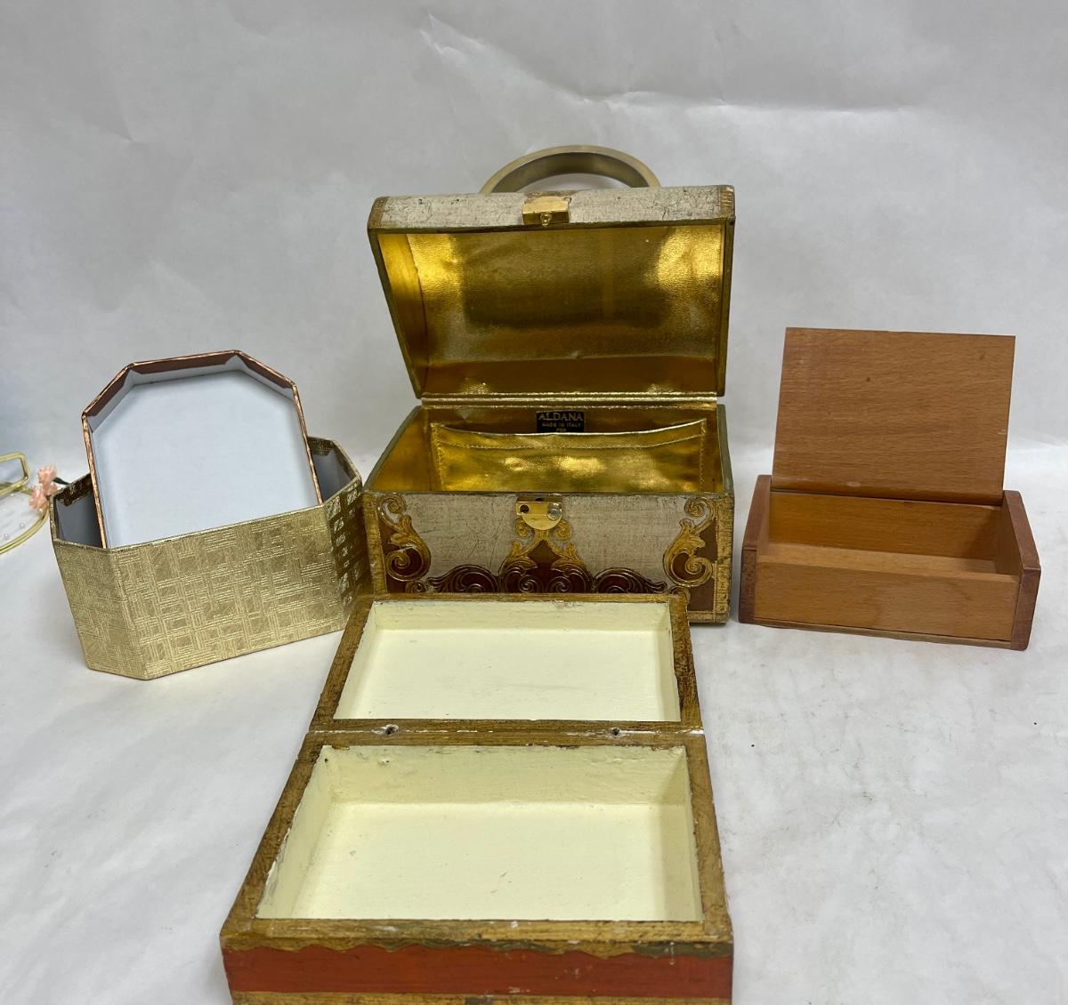 4 pc Vintage Lot of boxes and Aldana (Italian) chest shaped handbag purse